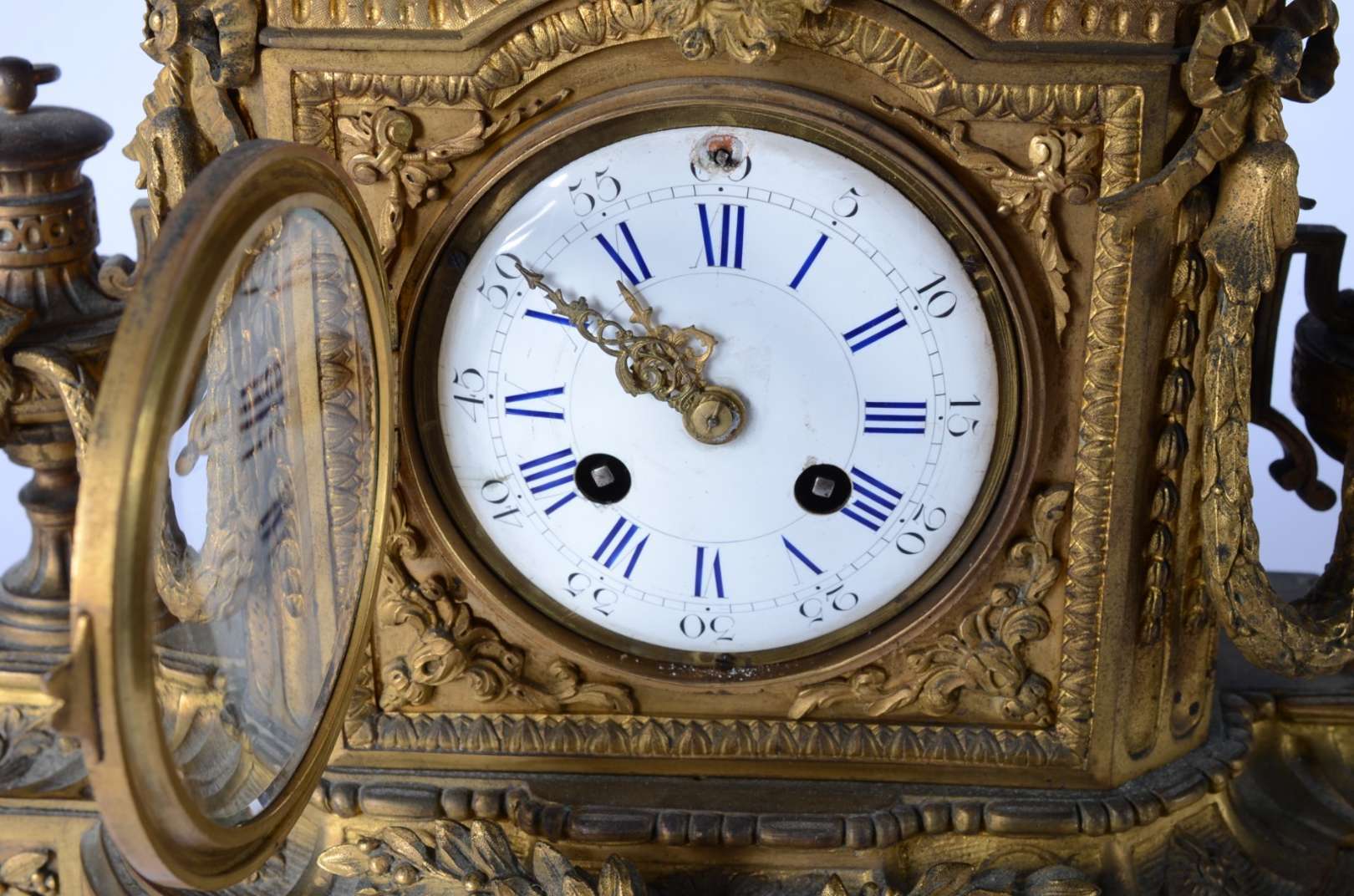 Espelho de cristal bisotado com moldura entalhada e patinada de dourado. Estilo frances.