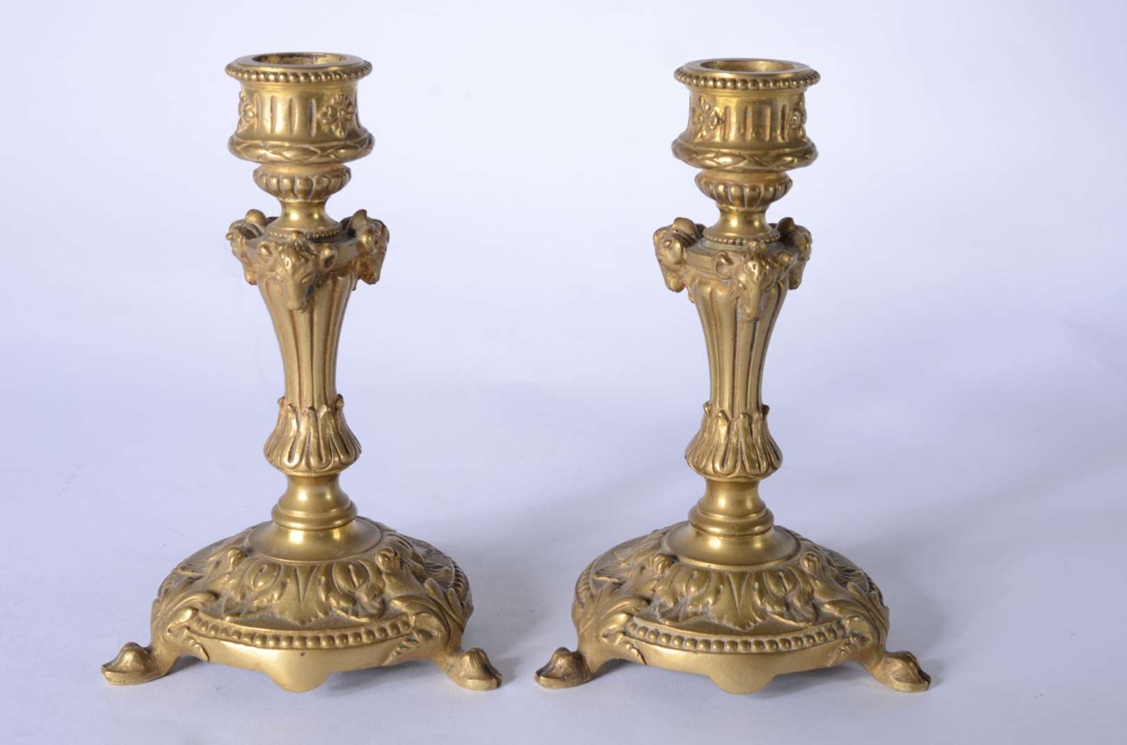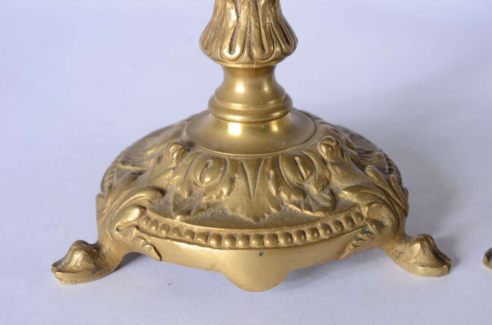 Par de talhas de madeira patinada. Desgastes.