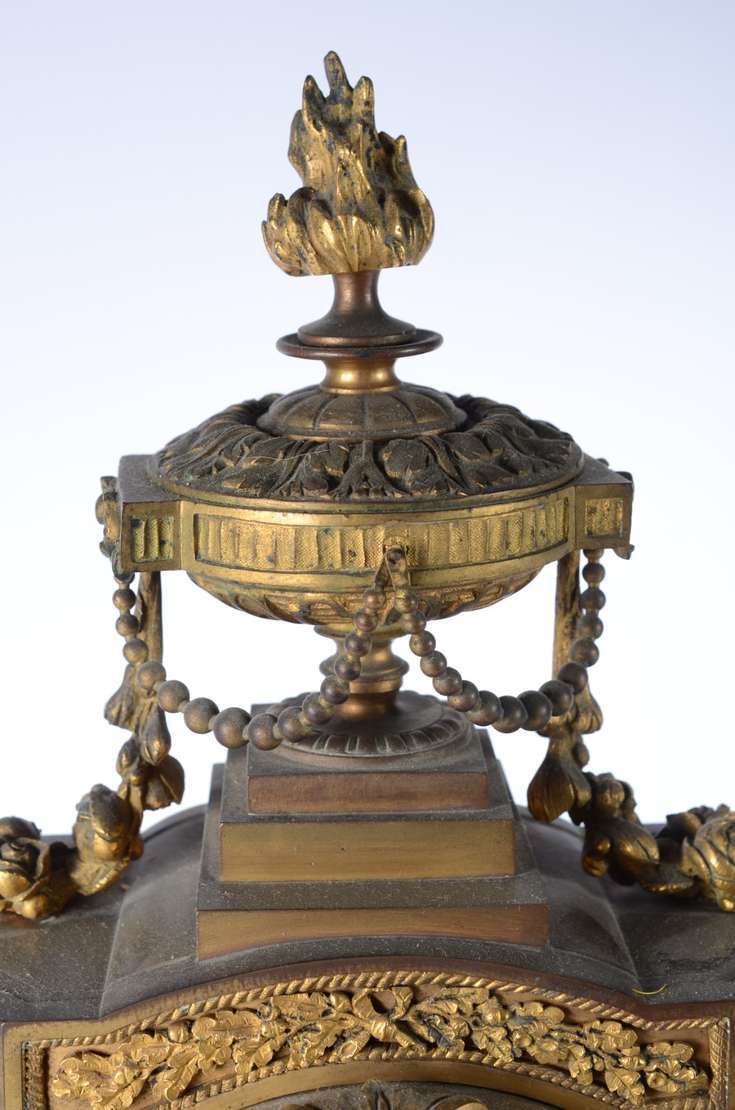 "Relógio de sol" de bronze com base de mármore.