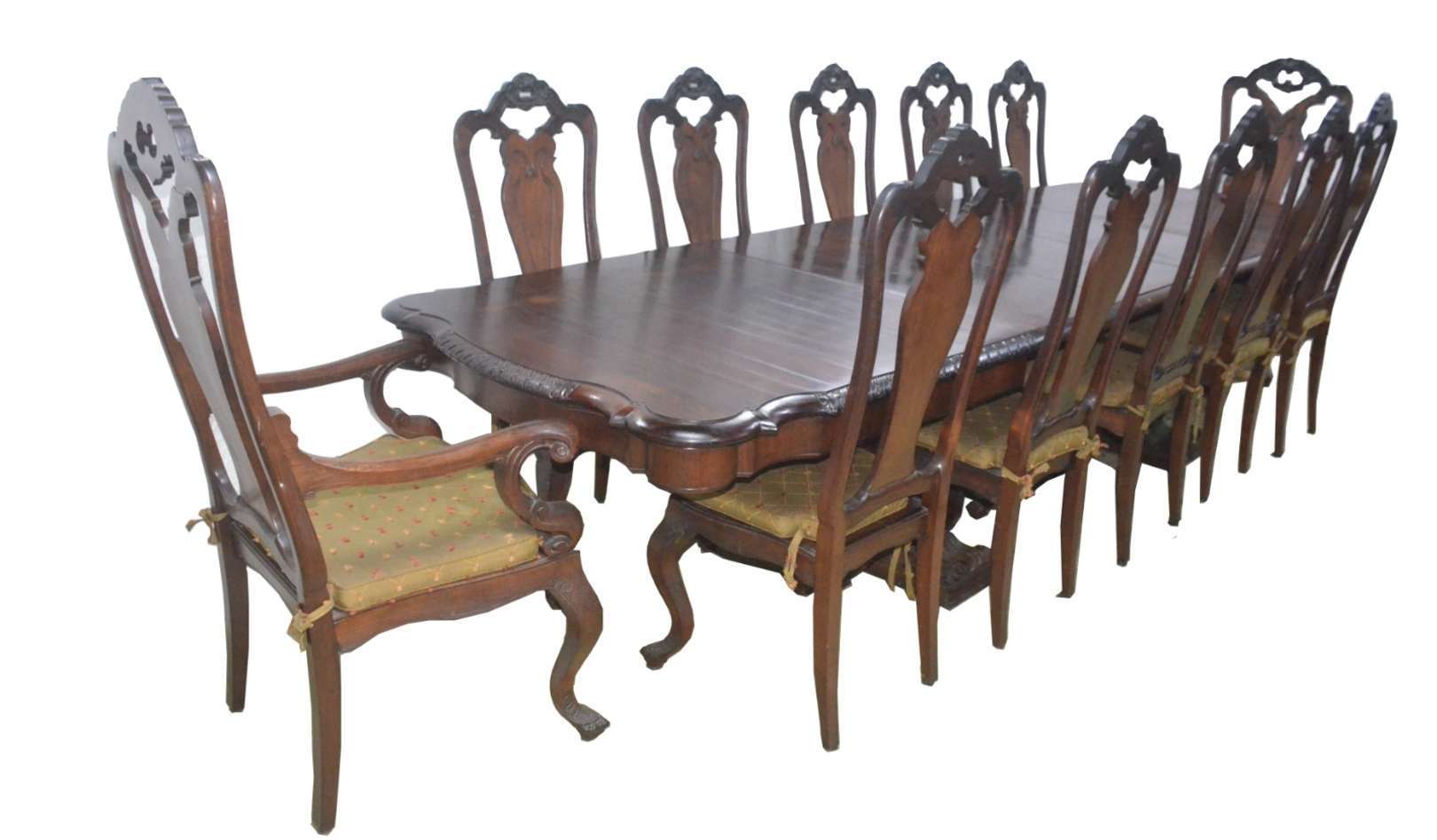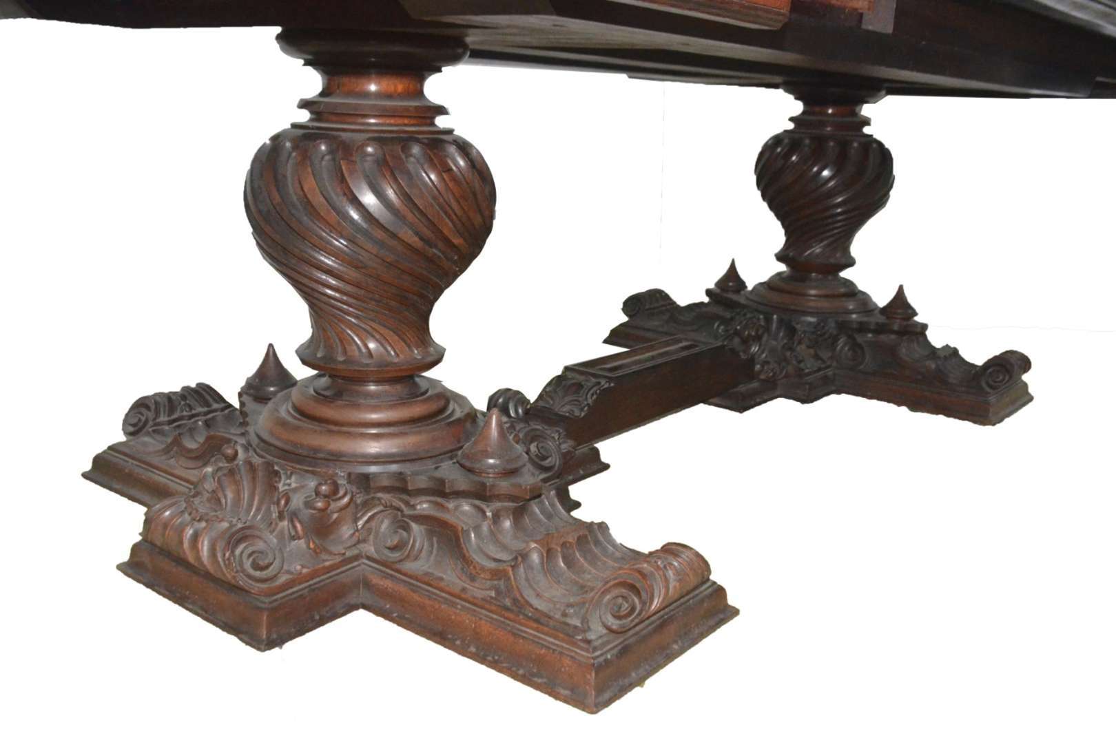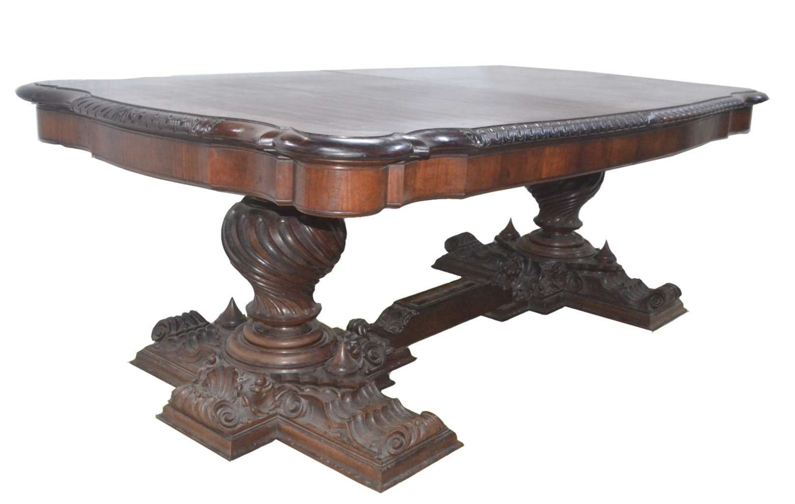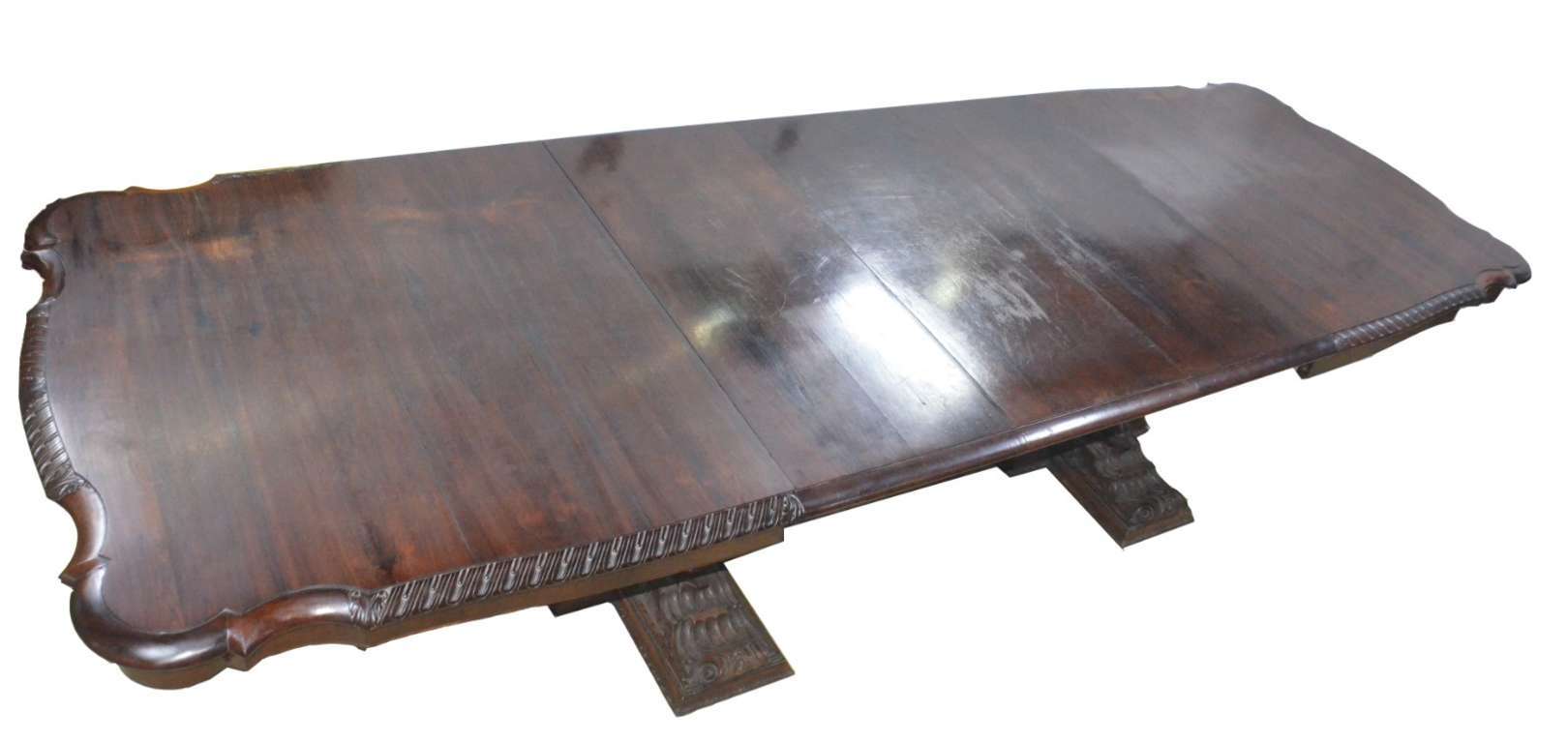 Mesa de jantar de madeira nobre com 3 tábuas extensoras (cada uma medindo 1,30 m x 0,39 cm.) apoio em quatro pernas c...