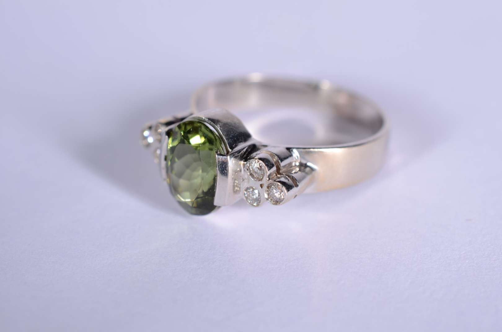 Anel de ouro 18 k., contraste 750 mls com quatro pedras lapidadas, aro 14. (Por motivos de segurança a peça não se e...