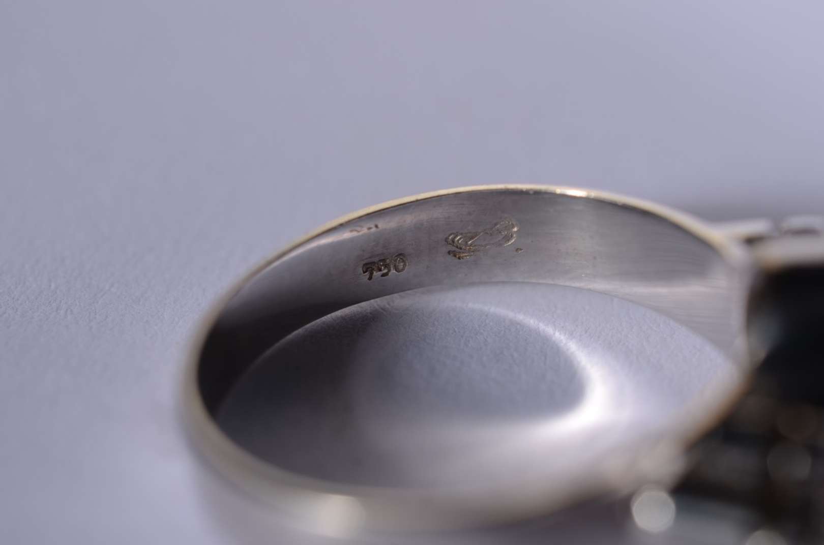 Anel de ouro 18 k., contraste 750 mls, aro 19. (Por motivos de segurança a peça não se encontra na loja).