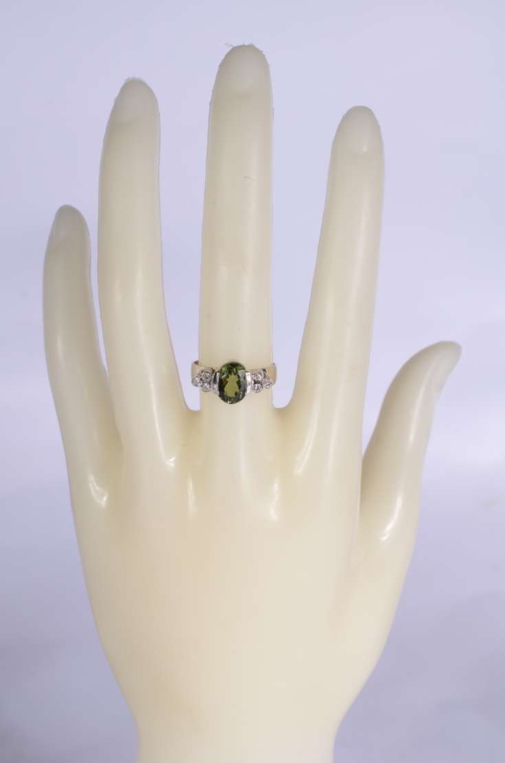 Anel de ouro 18 k., contraste 750 com cinco brilhantes, aro 18. (Por motivos de segurança a peça não se encontra na ...