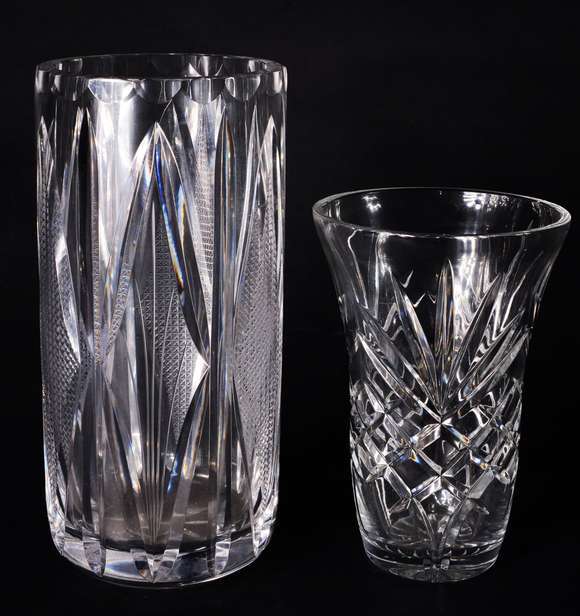 Dois vasos diversos de cristal lapidado.