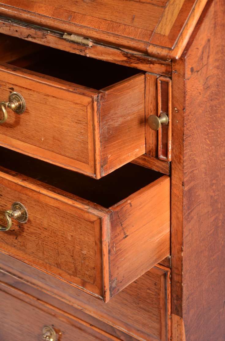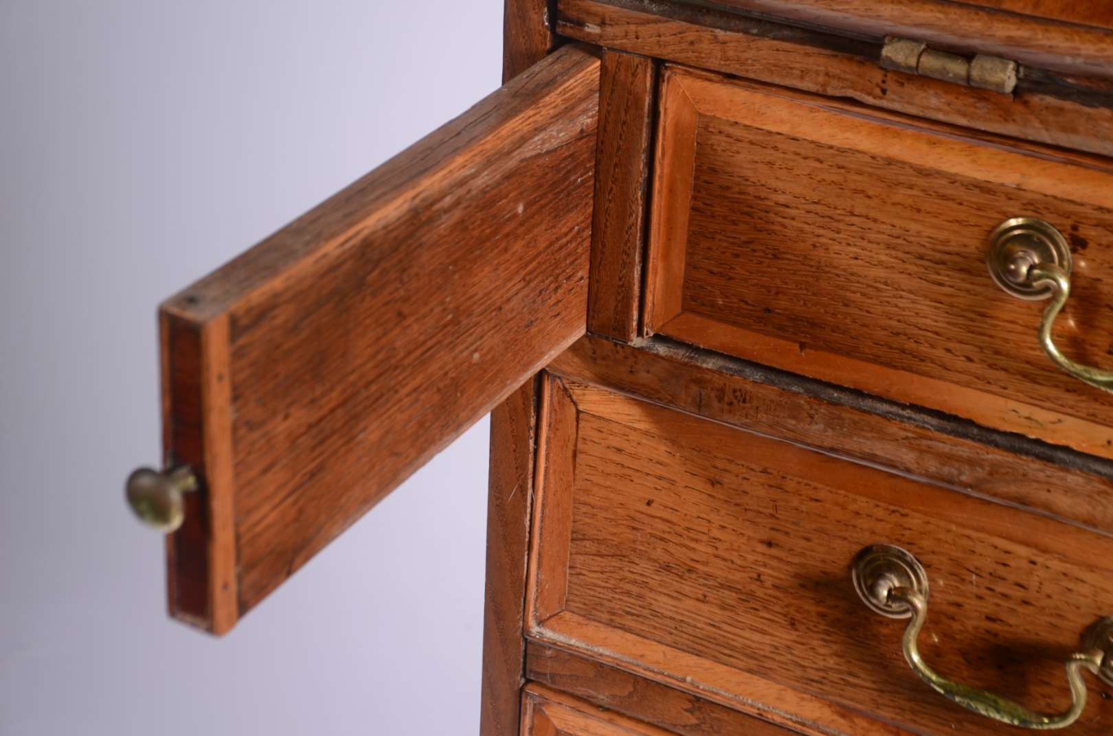 Escrivaninha de madeira nobre, tampo "esteirinha" com escaninhos e gavetinhas internas, prateleiras deslizantes sob o...