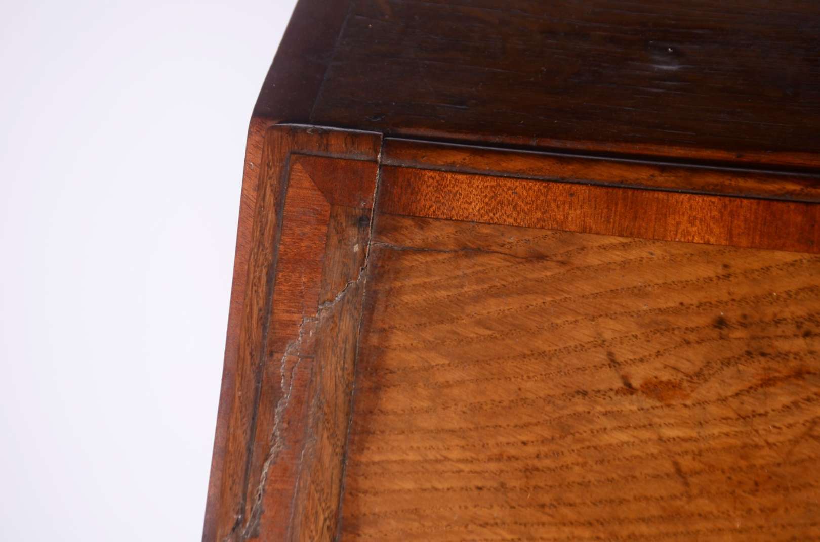Par de mesas laterais de jacarandá folheado, feitio quadrangular, platôs inferiores, anos 60. Pequenos desgastes.