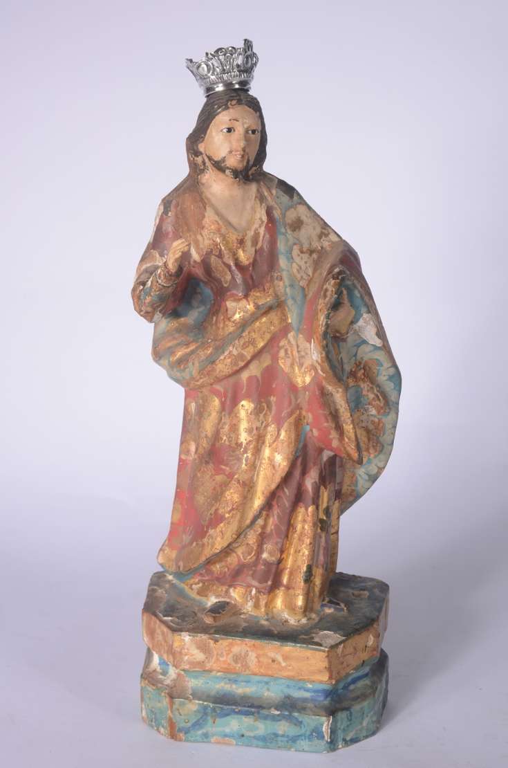 São José - Imagem de madeira policromada e dourada, Bahia, século XIX. Mão adaptada com coroa de prata.