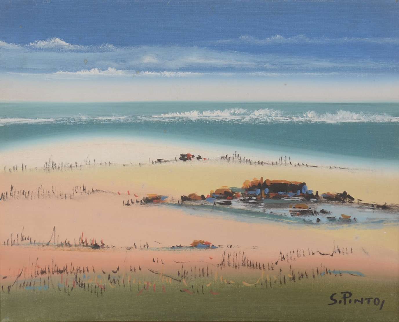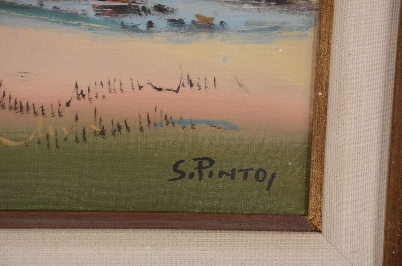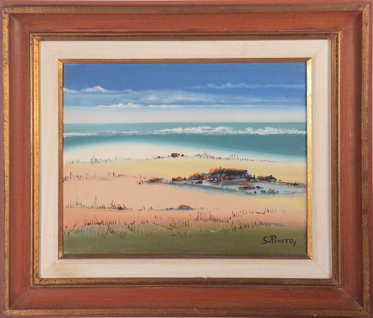 Três pequenos quadros decorativos de prata contrastada com paisagens portuguesas.