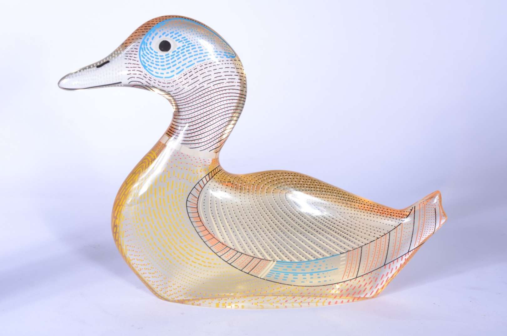 Quatro peças diversas de bronze, sendo: figura de pato com tampo solto; 2 peixes com "bocas" abertas; e, mosca com as...