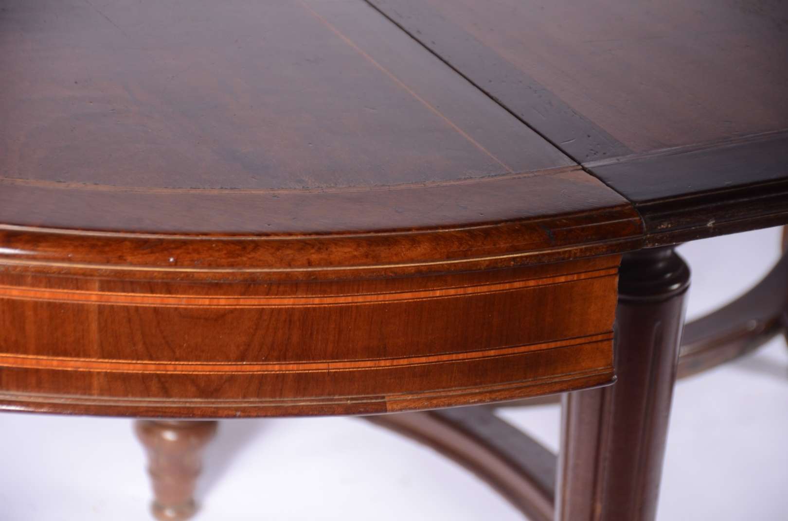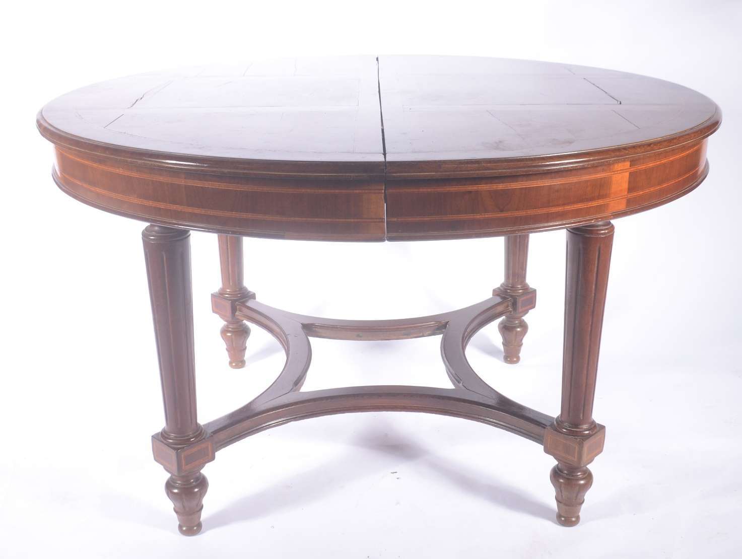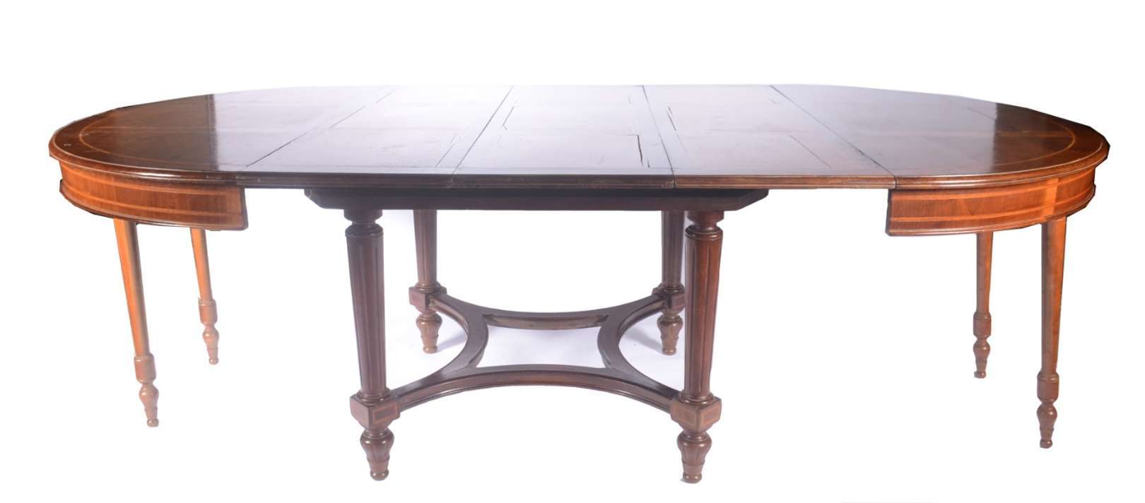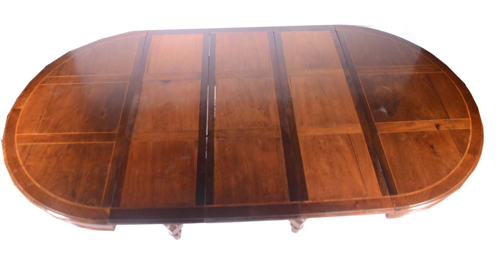 Mesa de jantar de jacarandá, tampo retangular com 3 tábuas extensoras (cada uma medindo 1,27 m. x 0,50 cm), base em d...