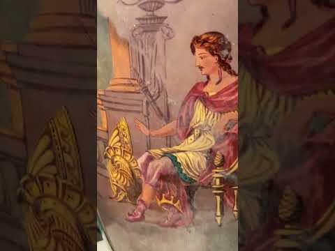 Vaso de porcelana francesa decorado com guirlandas florais sobre fundo verde e bege, realces dourados.