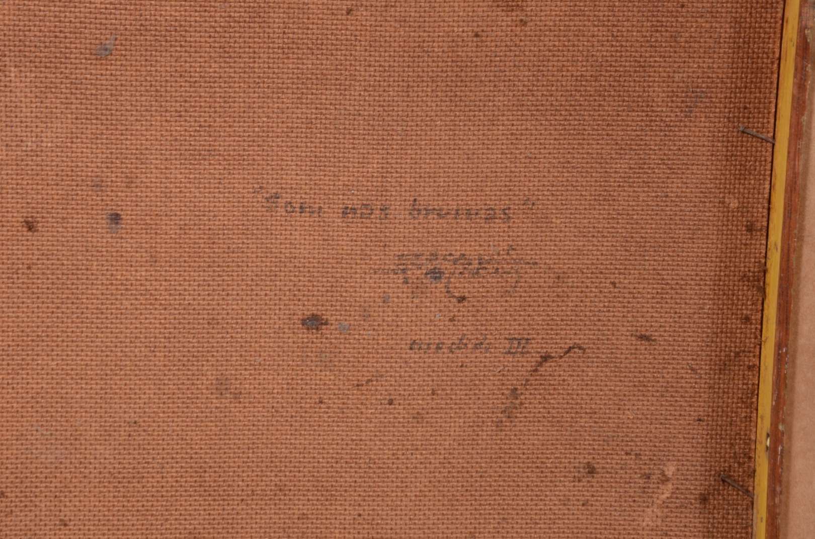 Tríptico de madeira com pinturas em policromia representando o Antigo e Novo testamento, sendo: derrubada da muralhas...