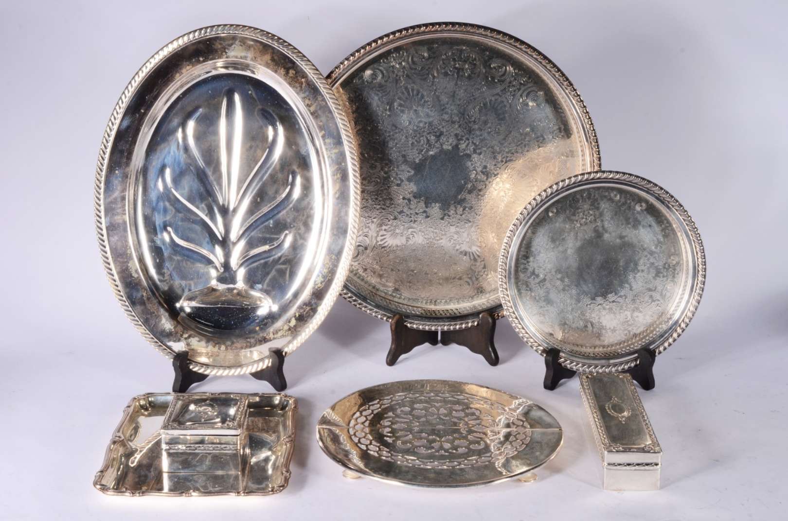 Quatro pequenas peças de prata de lei. Peso da prata: 80 g. (Por motivos de segurança a peça não se encontra na loja)