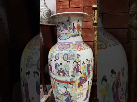Original vaso de formato balaústre em porcelana chinesa, do reinado Tongzhi (1862-1874), montado com dois segmentos s...