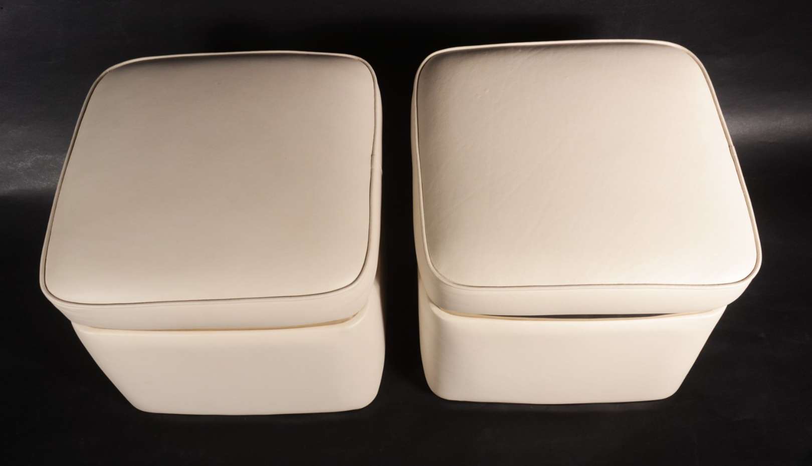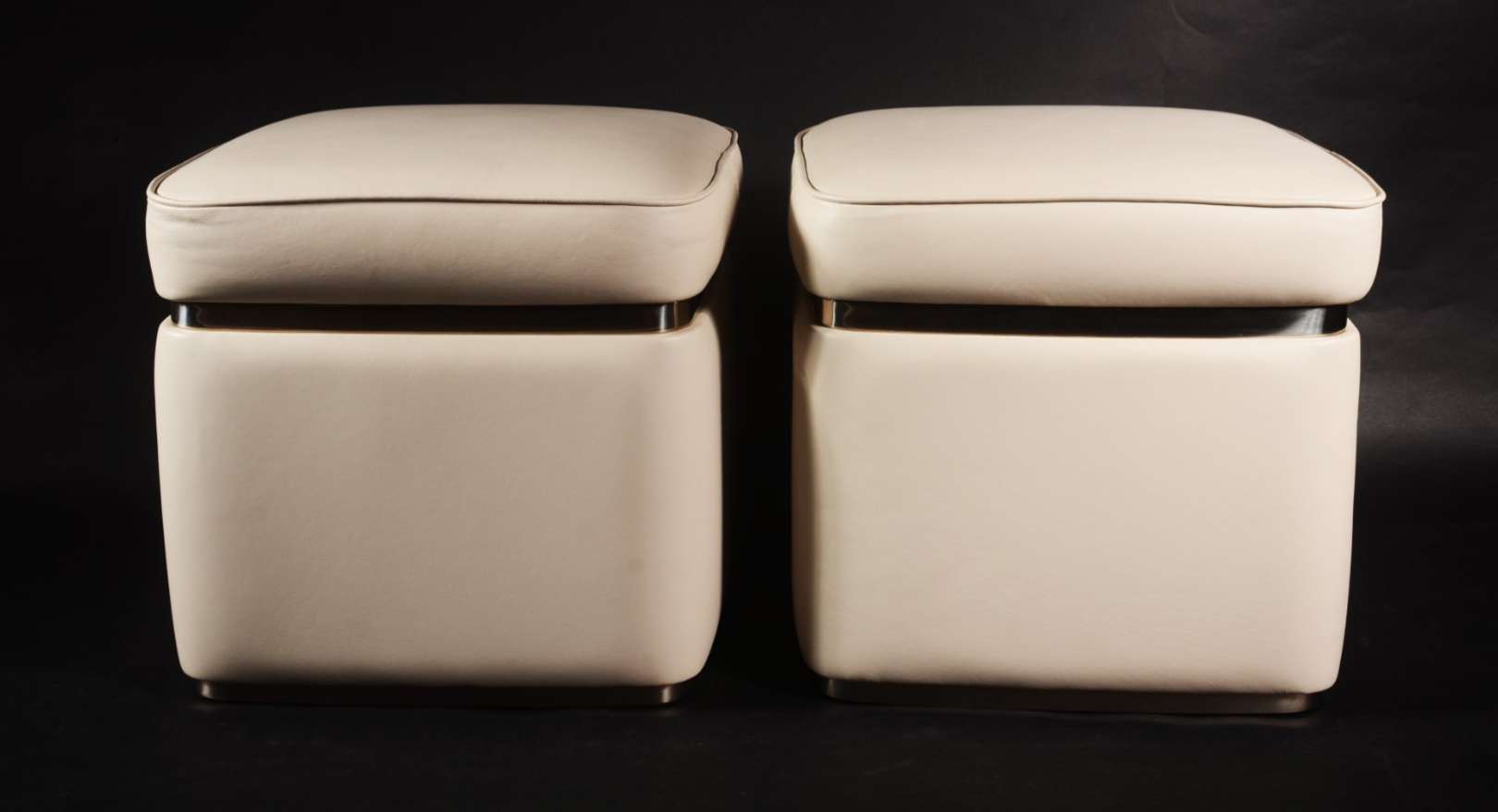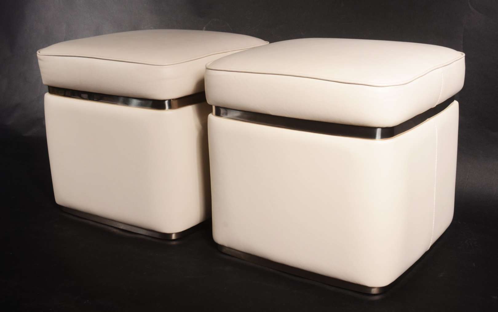Par de puffs "Dorset" estofados e forrados em couro. Comprado na Loja Artefacto, Casa Shopping. RJ.