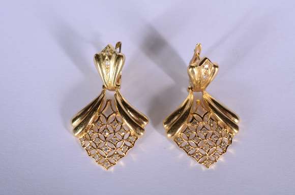 Par de brincos de ouro 18 k., com aproximadamente 30 brilhantes. (Por motivos de segurança a peça não se encontra na ...