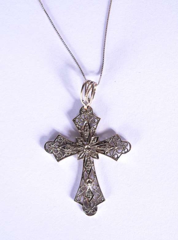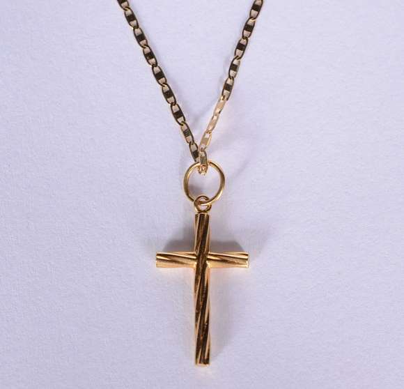 Colar com pendente feitio cruz de ouro 18k. (Por motivos de segurança a peça não se encontra na loja).
