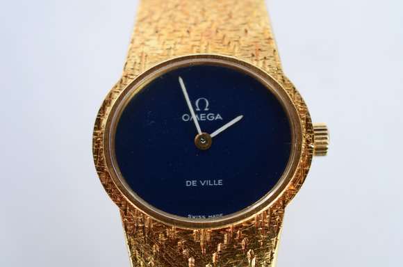 Relógio feminino de ouro 18 k., marca Omega - De Ville. Peso total: 47 g. (Por motivos de segurança a peça não se enc...