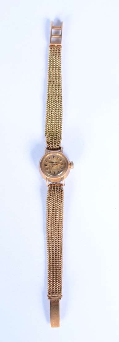 Relógio feminino de ouro 18 k., marca Omega - De Ville. Peso total: 47 g. (Por motivos de segurança a peça não se enc...