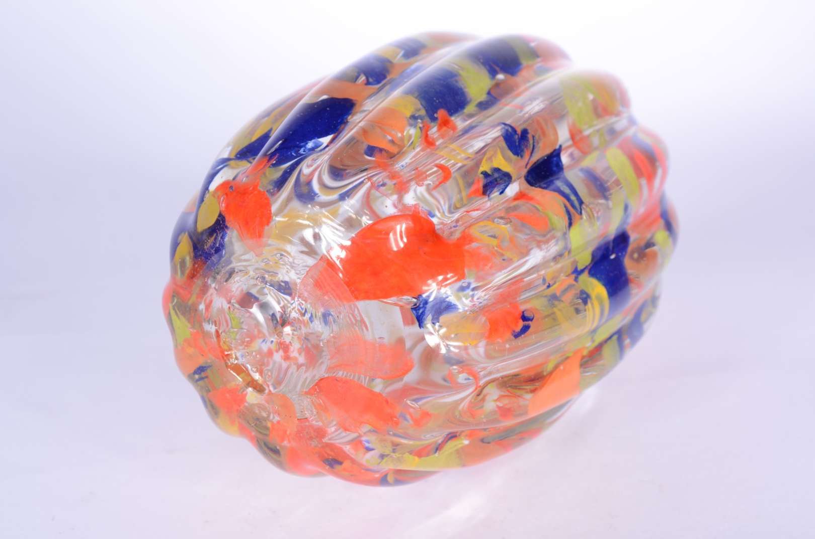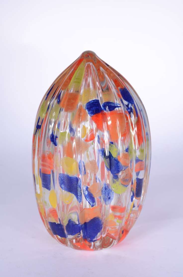 Peso de papel de vidro decorativo feitio gomado na cor azul com pó de ouro.