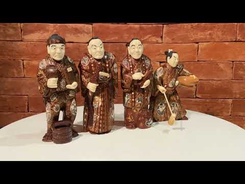 Cinco estatuetas de barro cozido policromado, sendo 4 "bois bumbá" (um com chifre quebrado), e golfinho.