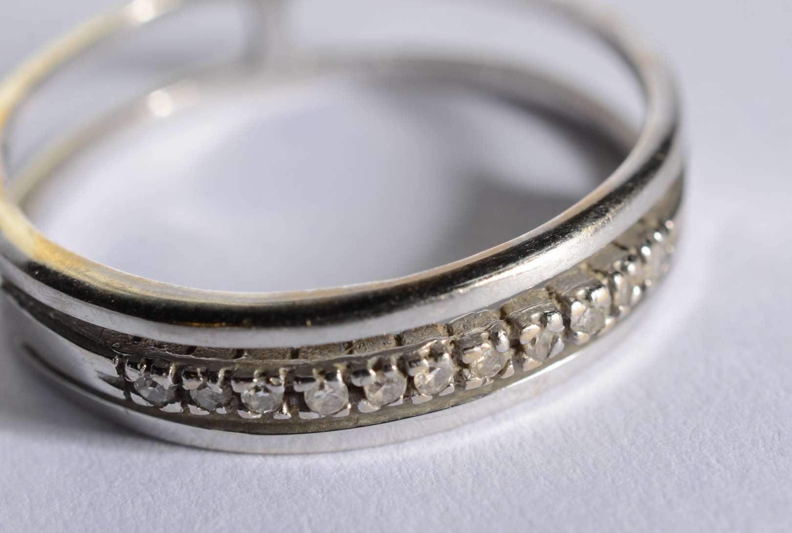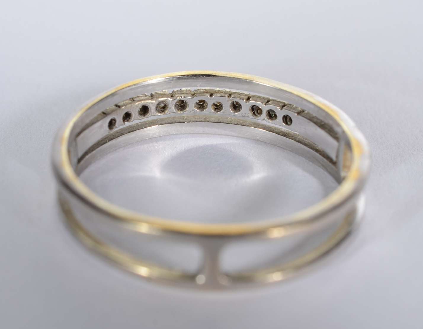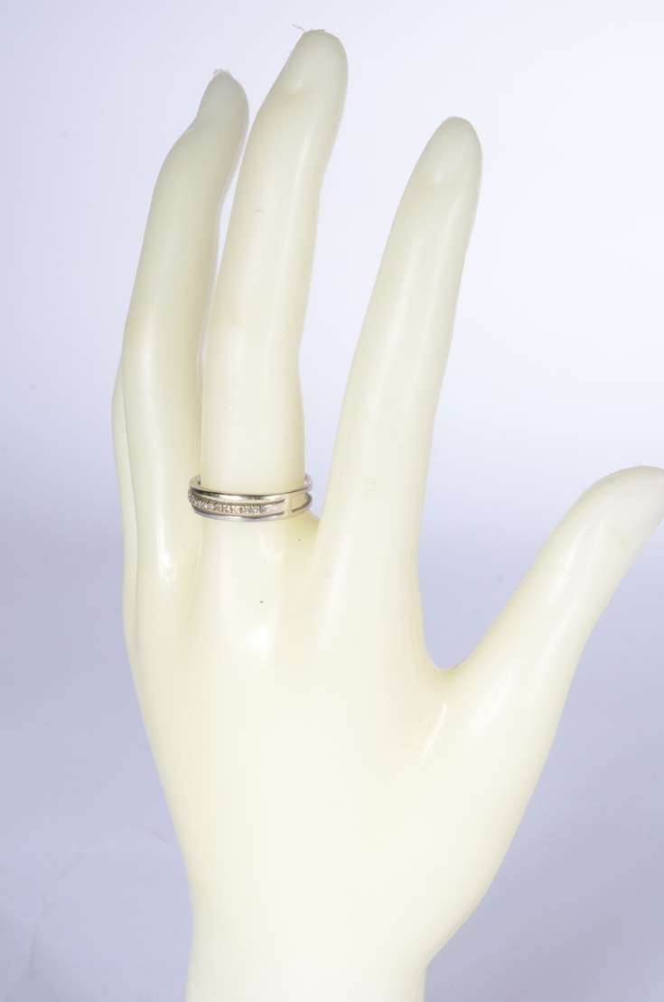 Anel de ouro 18 k., com mini brilhantes, aro 20. (Por motivos de segurança a peça não se encontra na loja).