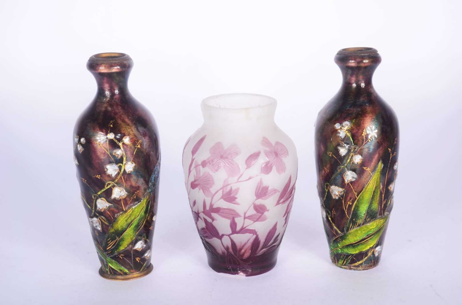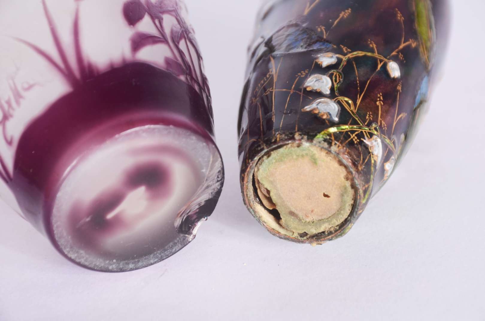 Três peças para toilette de cristal e prata de lei, sendo: Poseira inglesa e dois perfumeiros, diversos modelos.