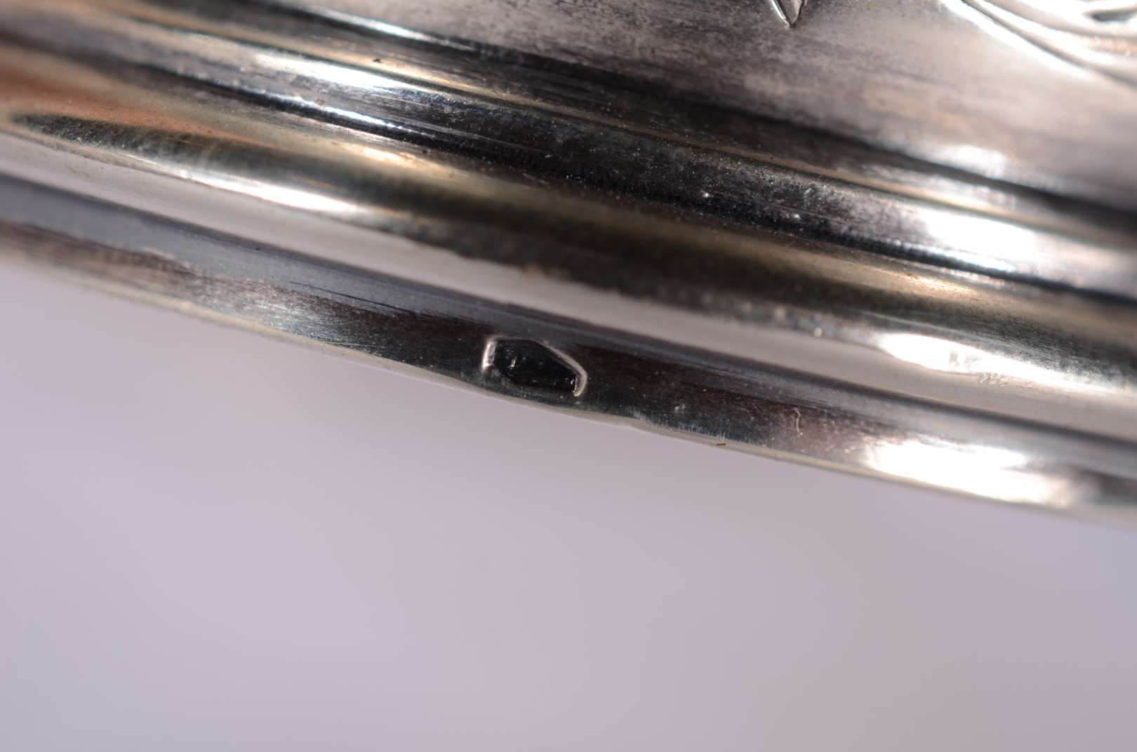 Três peças de prata peruana esterlina contraste 925 mls, prateiro Camusso, sendo: bandeja com borda em relevo, lampar...