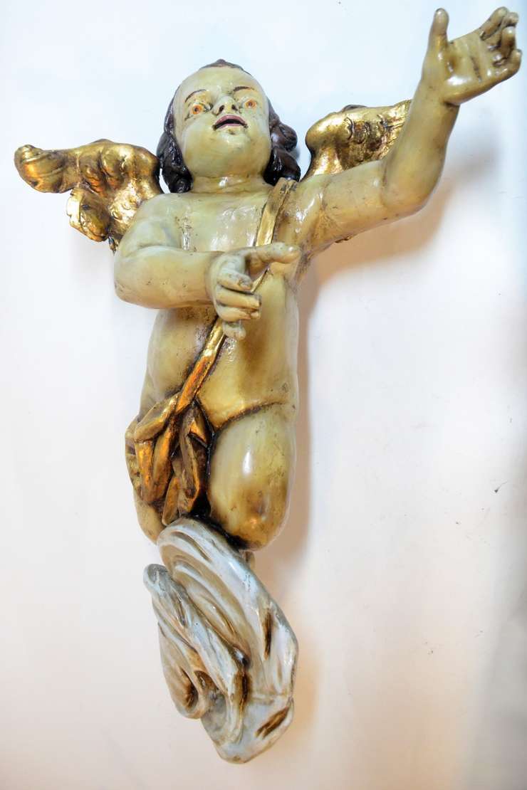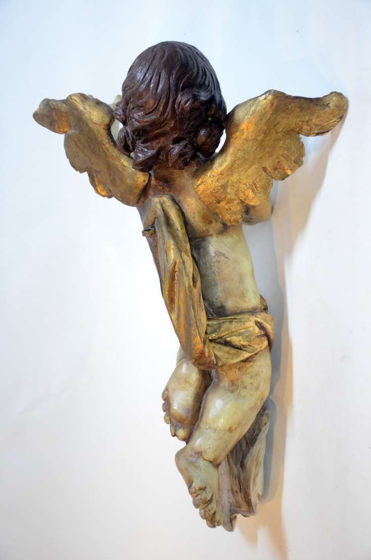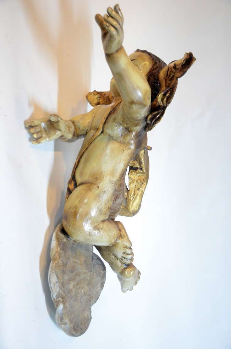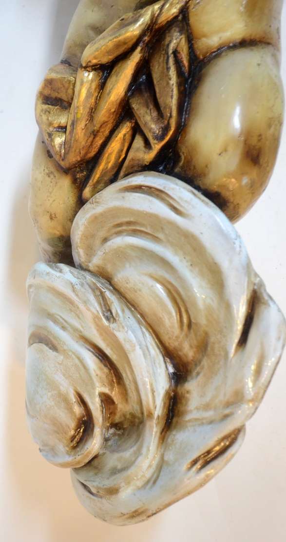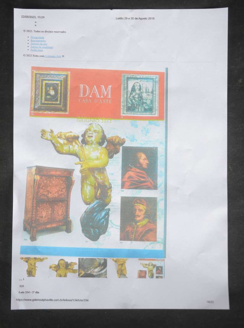Duas esculturas diversas, sendo uma de madeira entalhada e policromada (desgastes); e outra, representando figura mas...