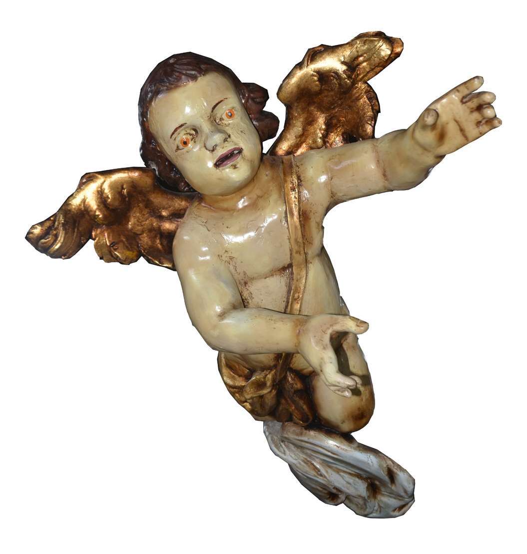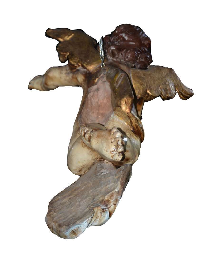 Duas imagens de madeira policromada, sendo: São João Batista e Nossa Senhora. Desgastes.