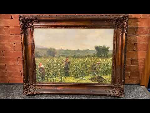 Duas placas miniaturas pintadas com figuras femininas em policromia sobre placas de marfim. Assinadas. Molduras vazad...