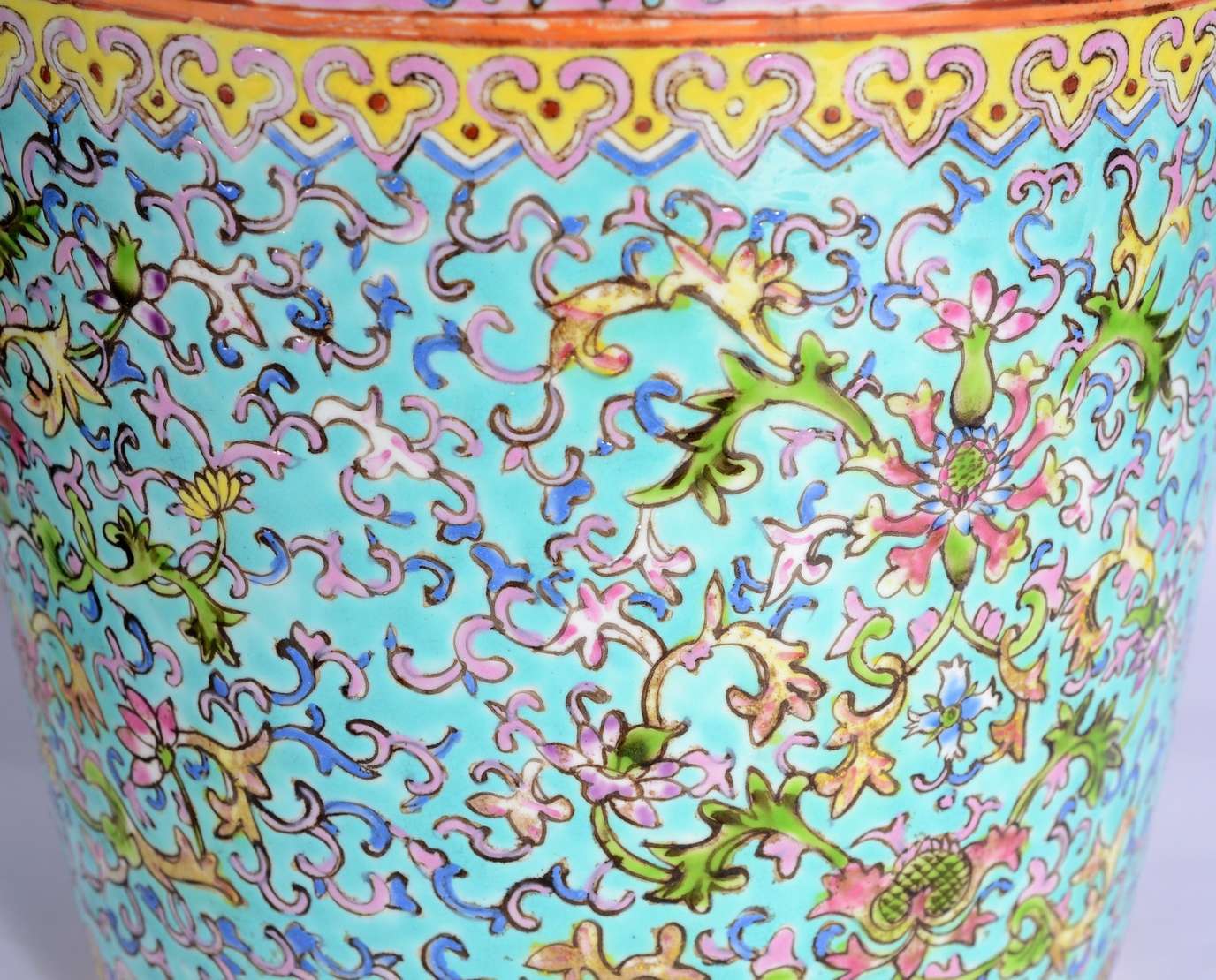 Par de aquários de porcelana chinesa, decorado com flores policromia. Parte interna com figuras de carpas. Um deles c...