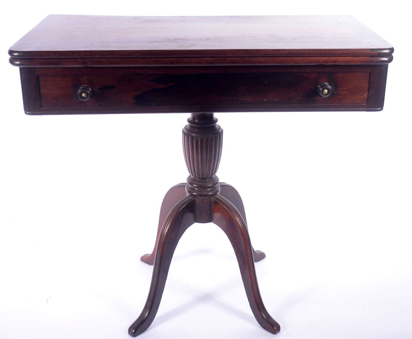 Penteadeira de madeira nobre, Art Deco, espelho central de cristal (manchas no espelho e pequenos defeitos na madeira).
