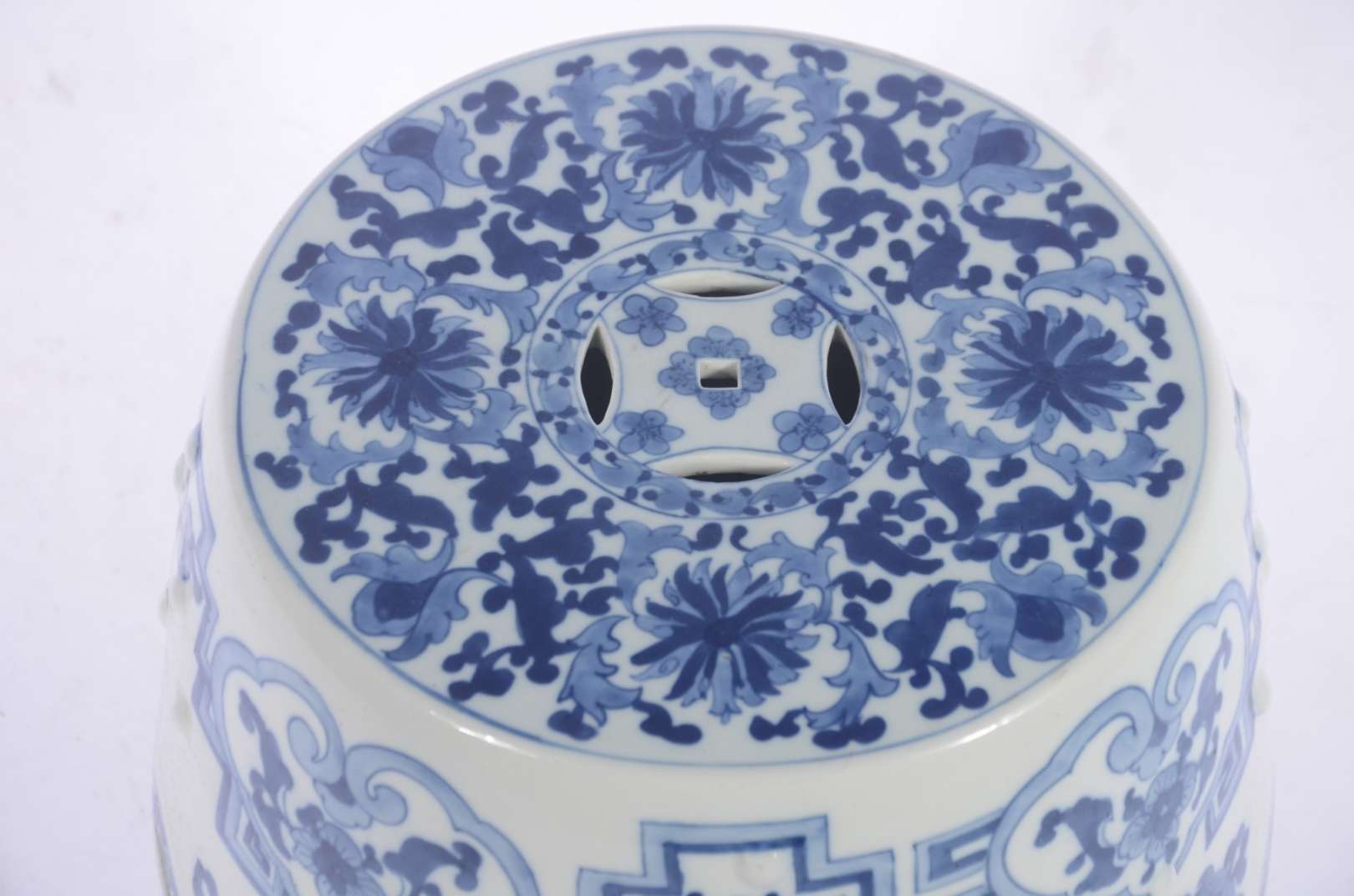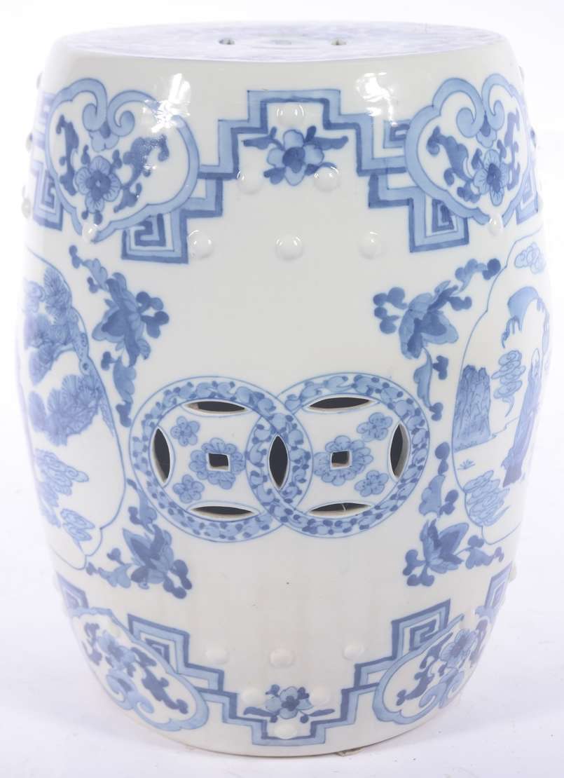 Dois cachepots de porcelana chinesa, um deles com prato e decorado com aves e vegetação em policromia, e o outro com ...