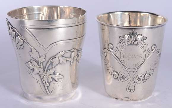 Dois copos de prata. Pequenos amassados. Peso da prata: 130 g. (Por motivos de segurança a peça não se encontra na l...