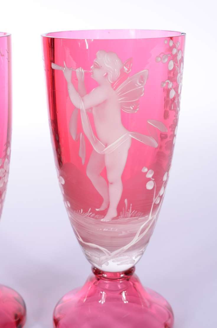 Conjunto com 6 cálices para vinho de cristal doublé rubi.