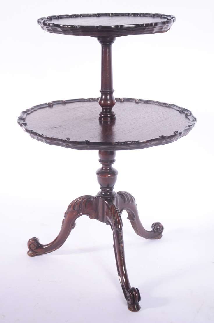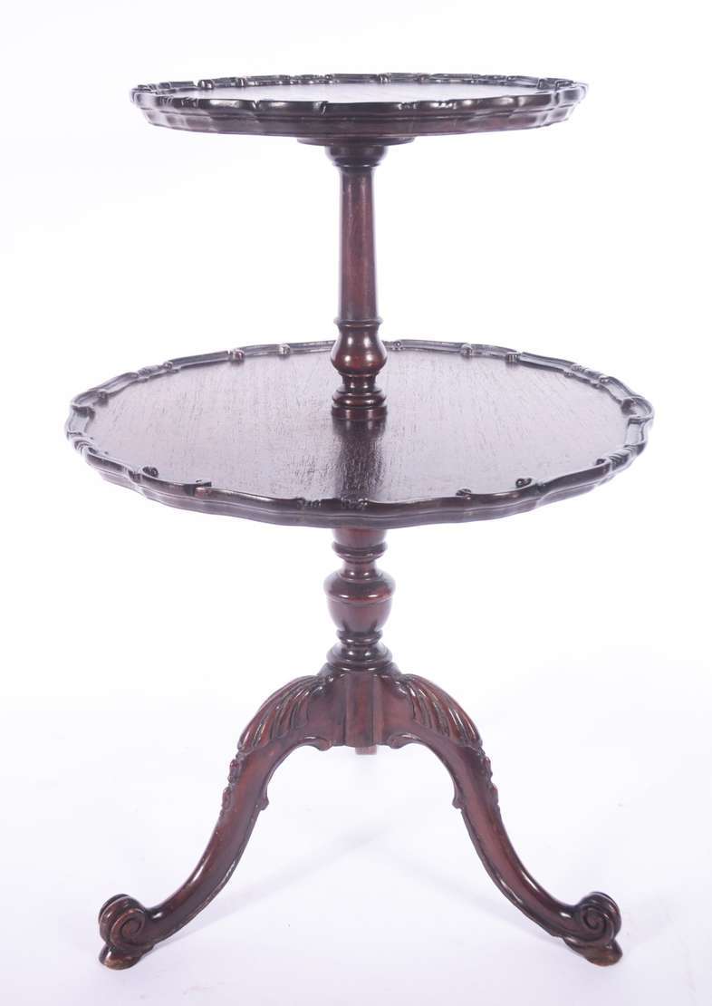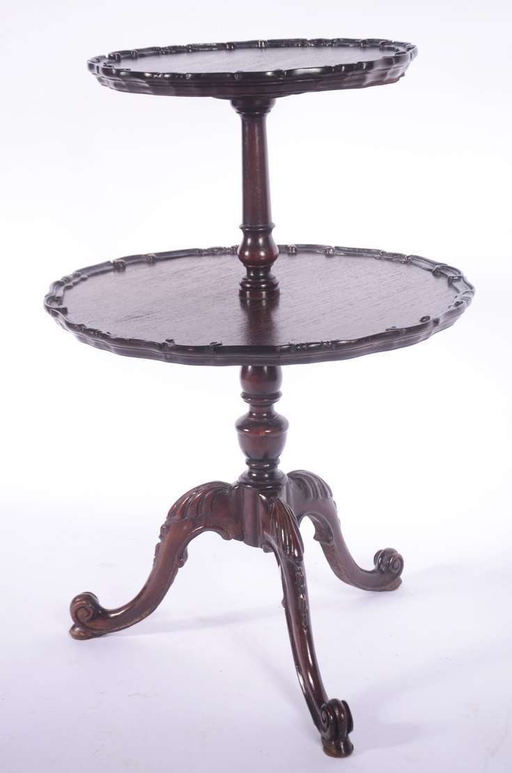 Mesa auxiliar de madeira ebanizada, platô inferior com gavetinha, pernas cilíndricas e ponteiras de bronze.