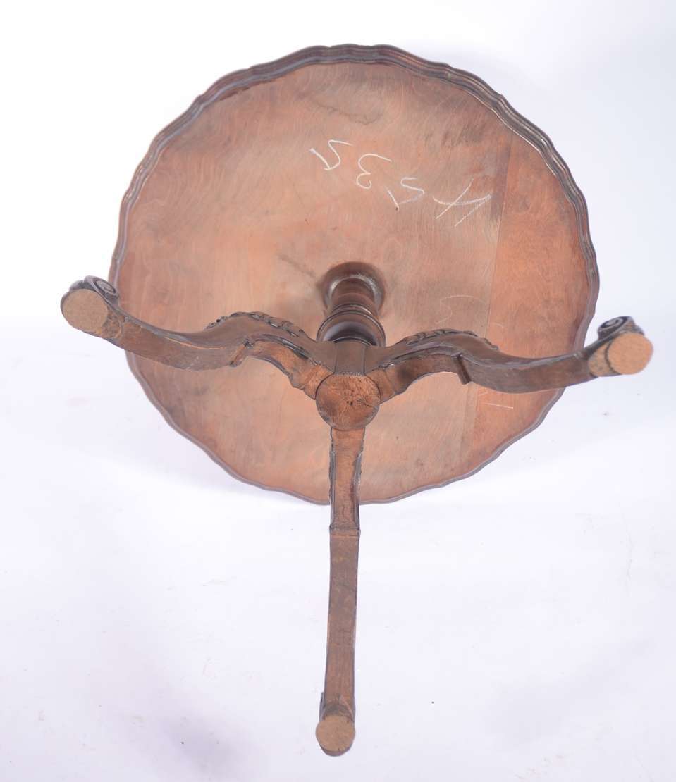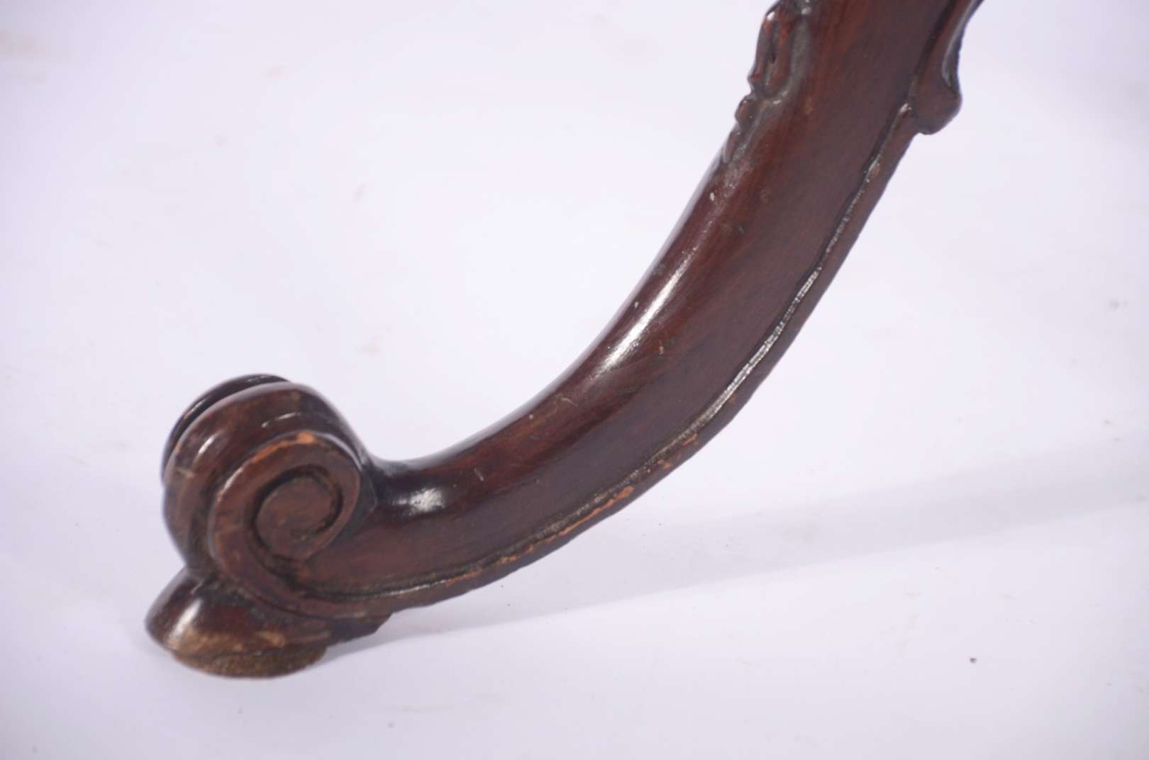 Mesa auxiliar de madeira nobre, tampo e saia recortados, pernas longas ligeiramente recurvas. Tampo coberto por vidro.