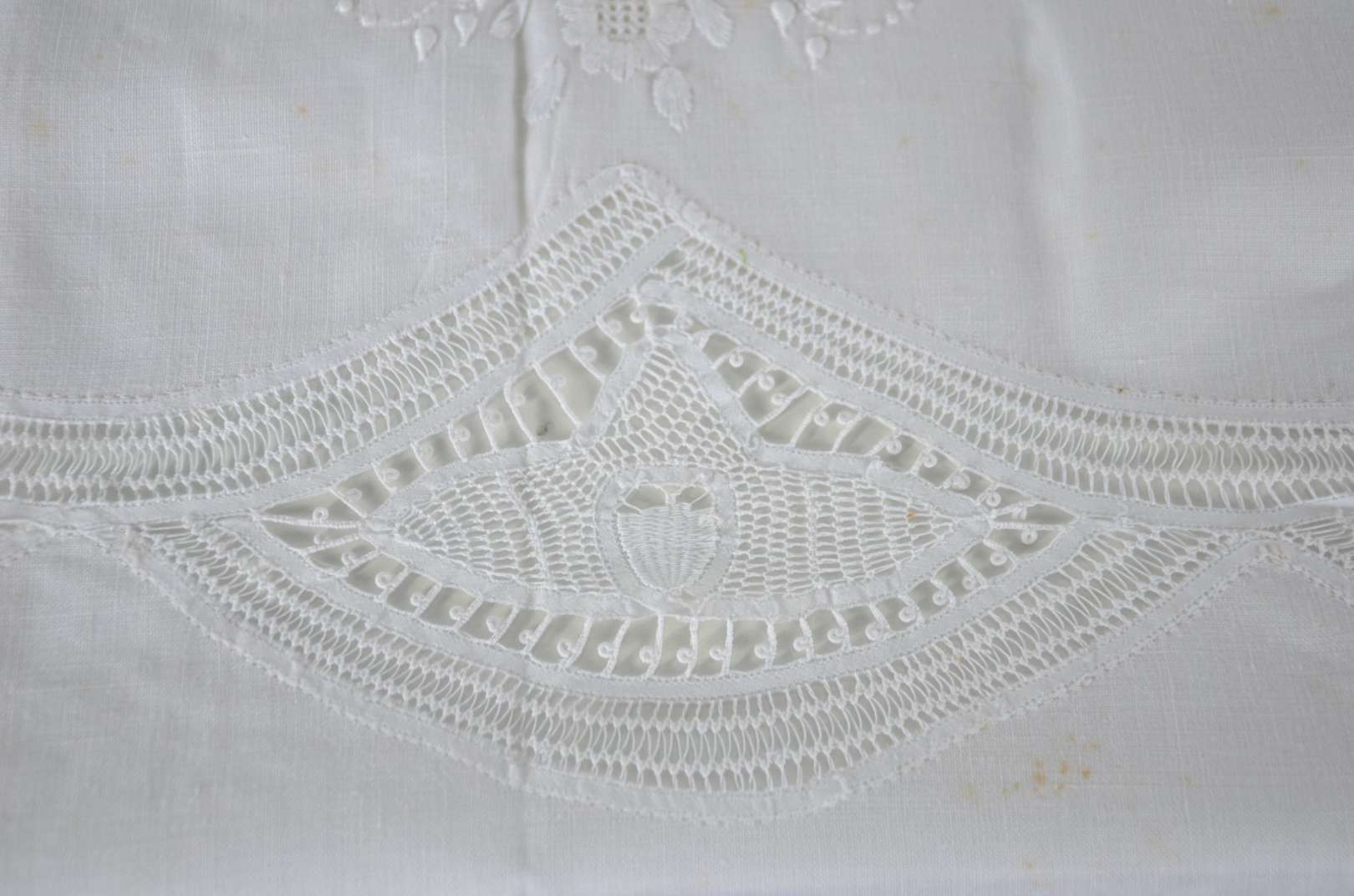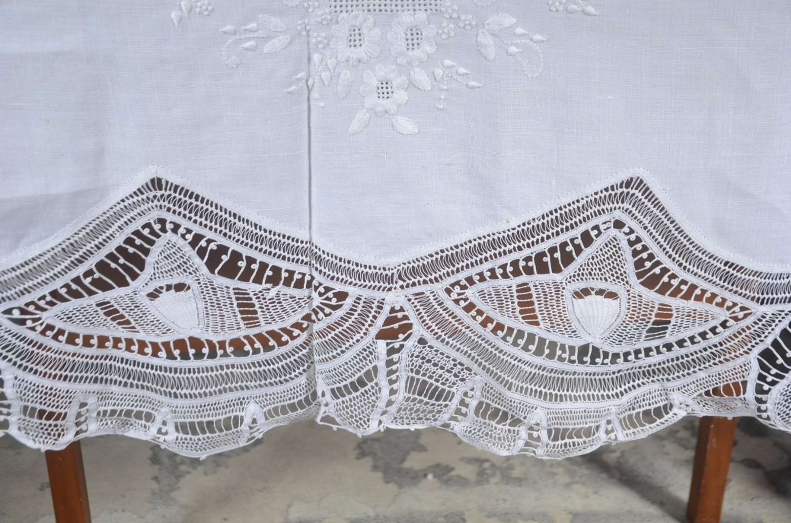 Travessa de porcelana alemã de Meissen, fundo branco decorado com ramos florais em policromia e borda recortada com f...