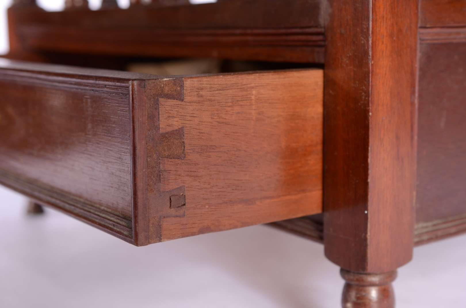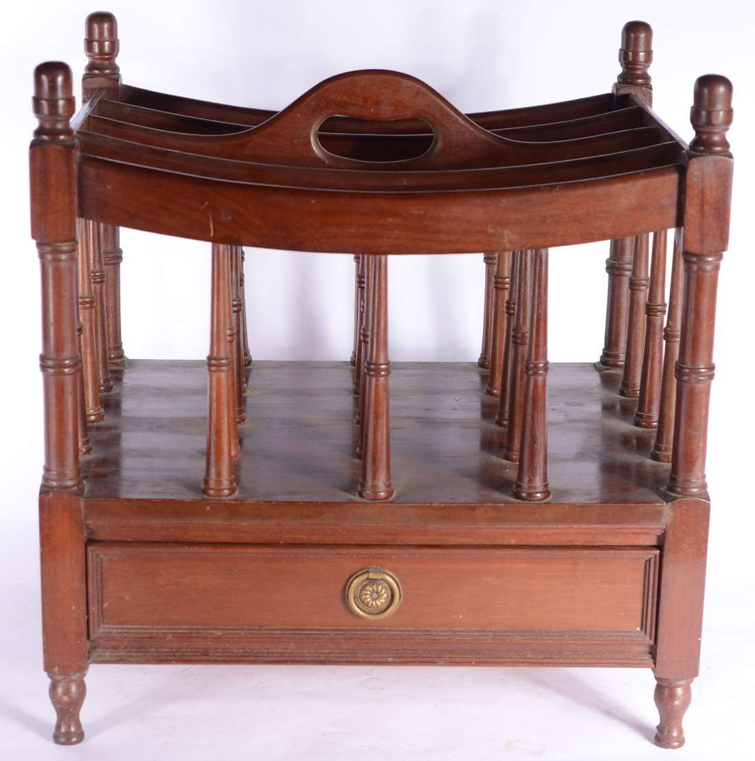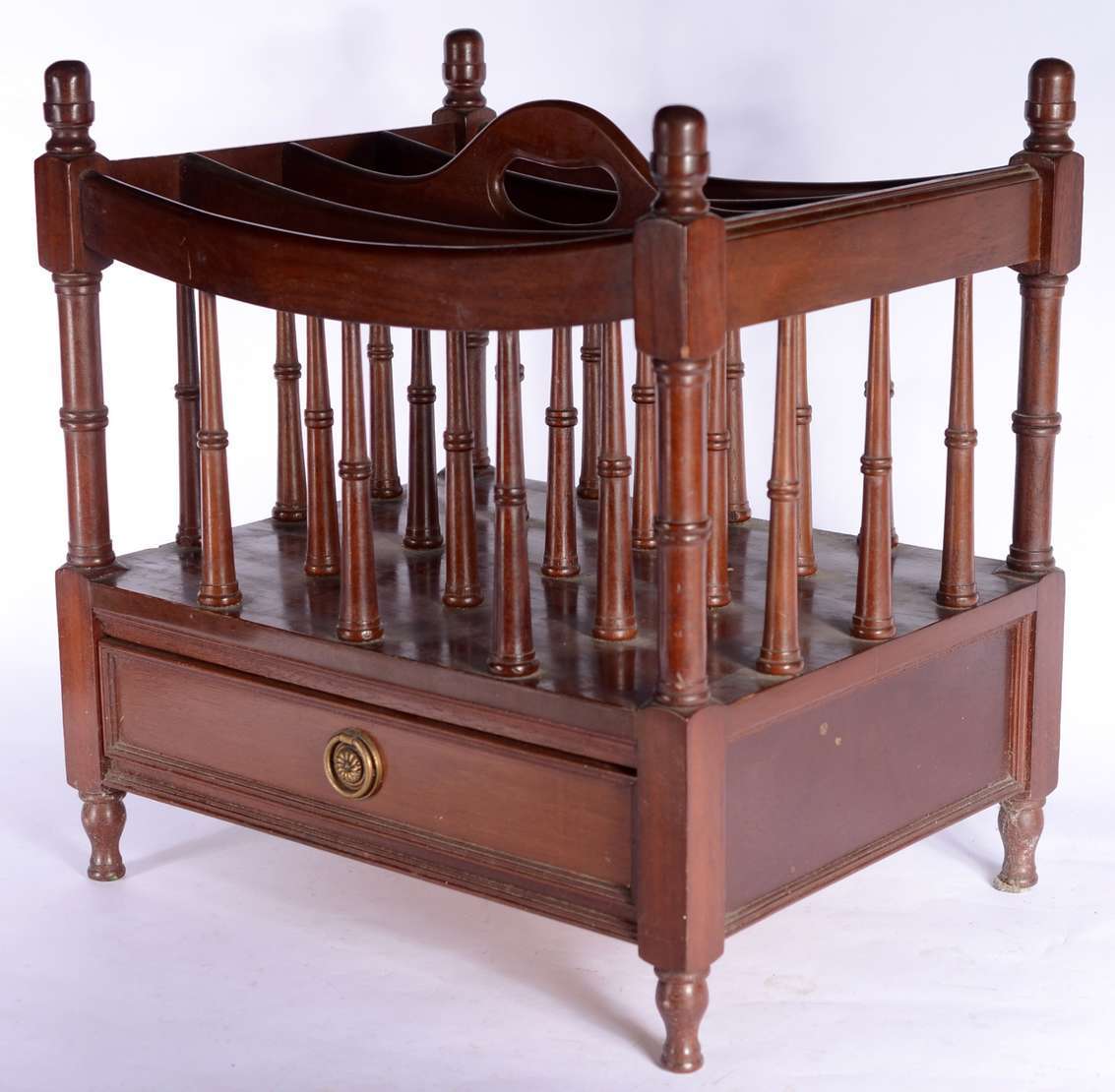 Aparador de madeira nobre, tampo dobrável, uma gaveta, apoio em coluna central canelada terminando em quatro pernas r...