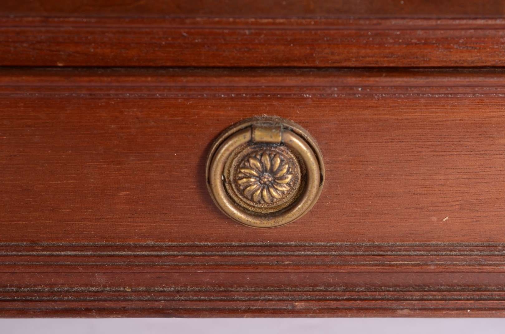 Penteadeira de madeira nobre, Art Deco, espelho central de cristal (manchas no espelho e pequenos defeitos na madeira).