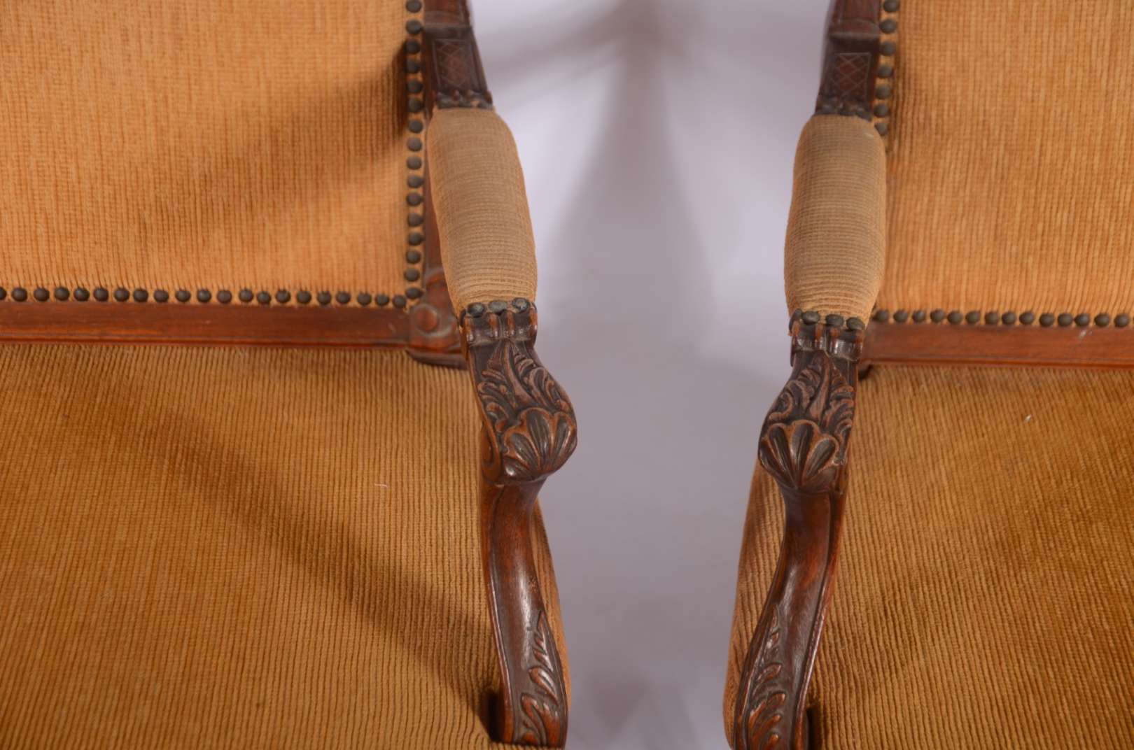 Par de cadeiras de madeira nobre, assentos de palhinha, encostos com traves recortadas e pés na forma de "X", (umas ...
