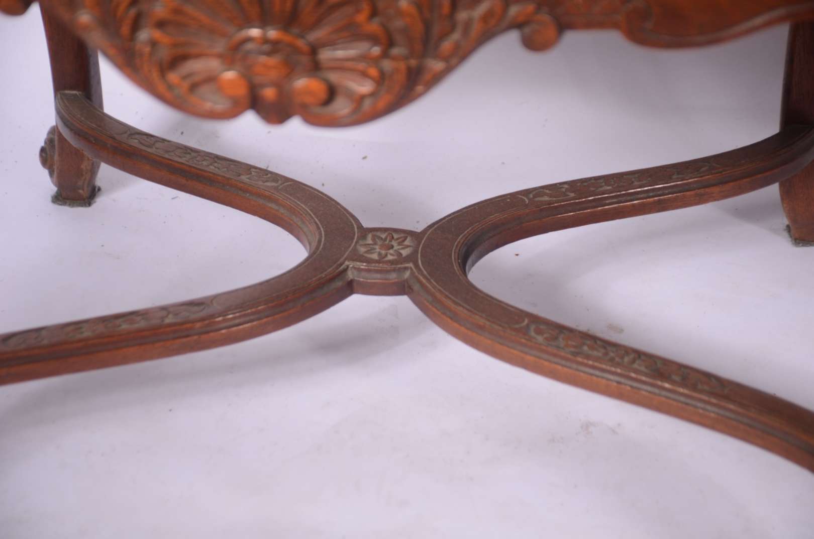 Mesa auxiliar "Cake table" de madeira nobre com 2 platôs, bordas recortadas e base na forma de tripé.