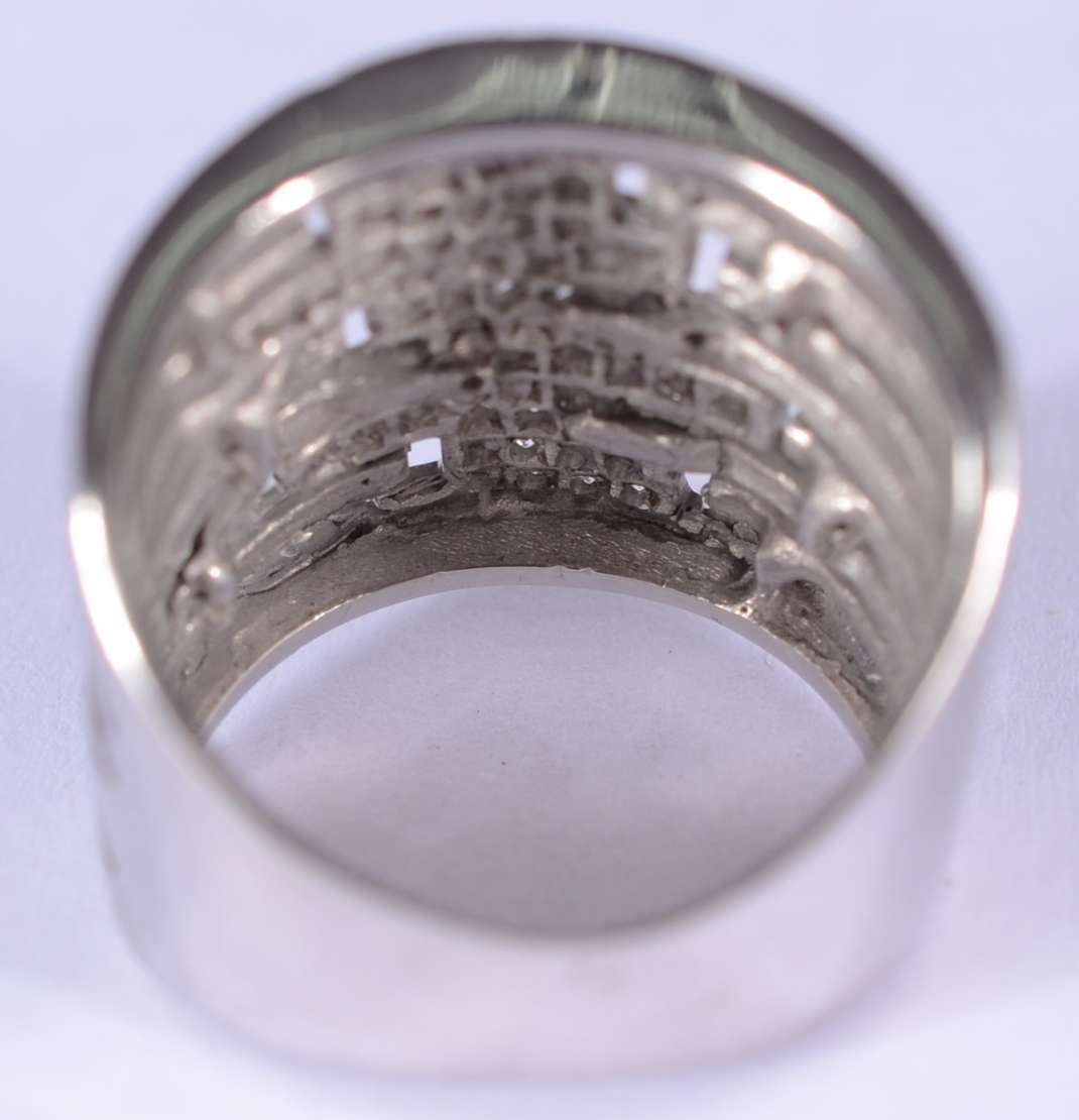 Anel de ouro 18 k., contraste 750 mls com aproximadamente 20 brilhantes, aro 22. (Por motivos de segurança a peça não...