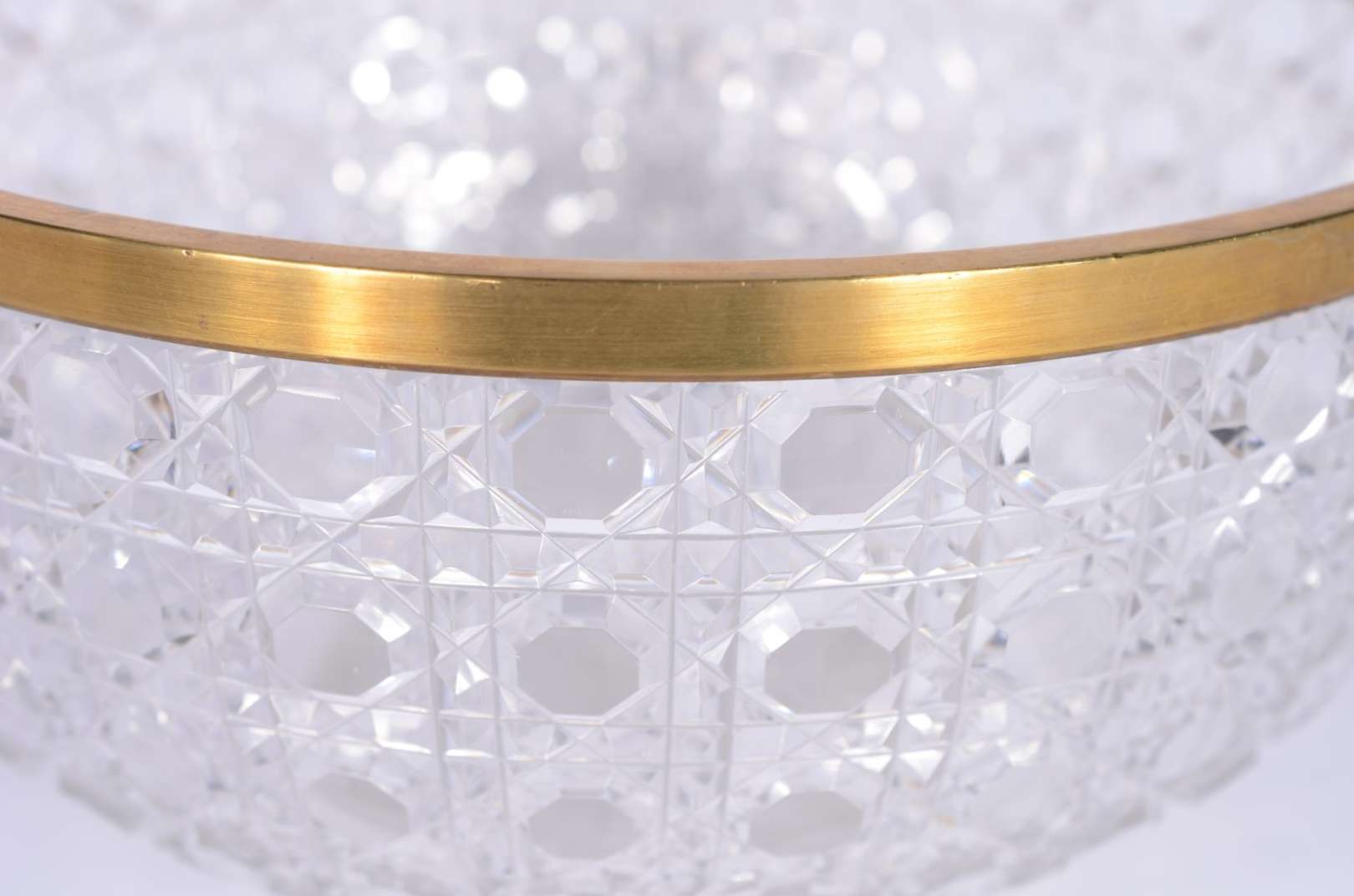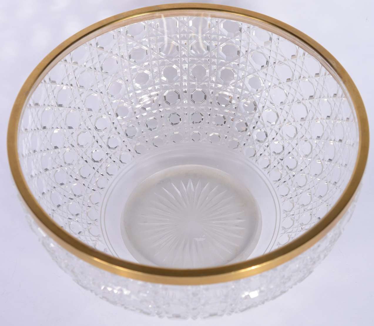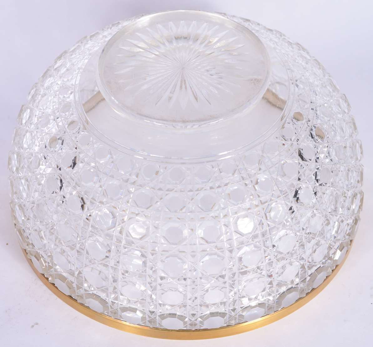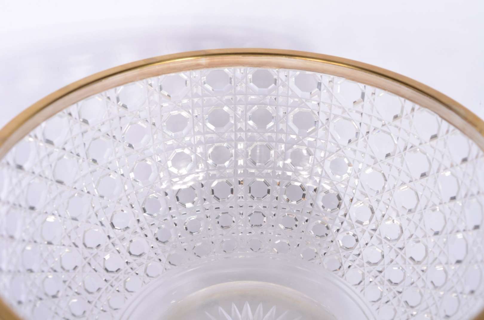 Bowl de cristal lapidação "tijolinho", borda de metal dourado.