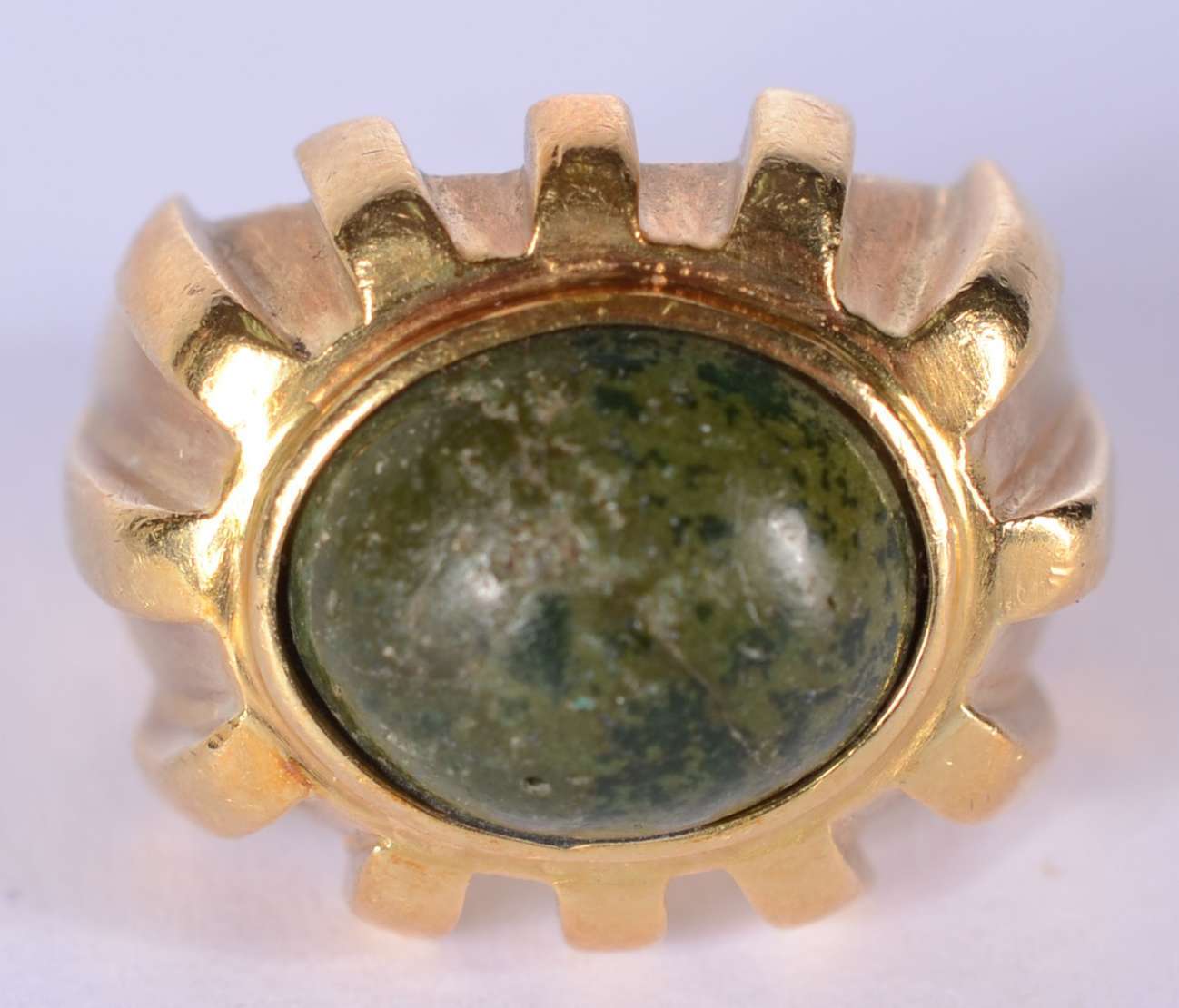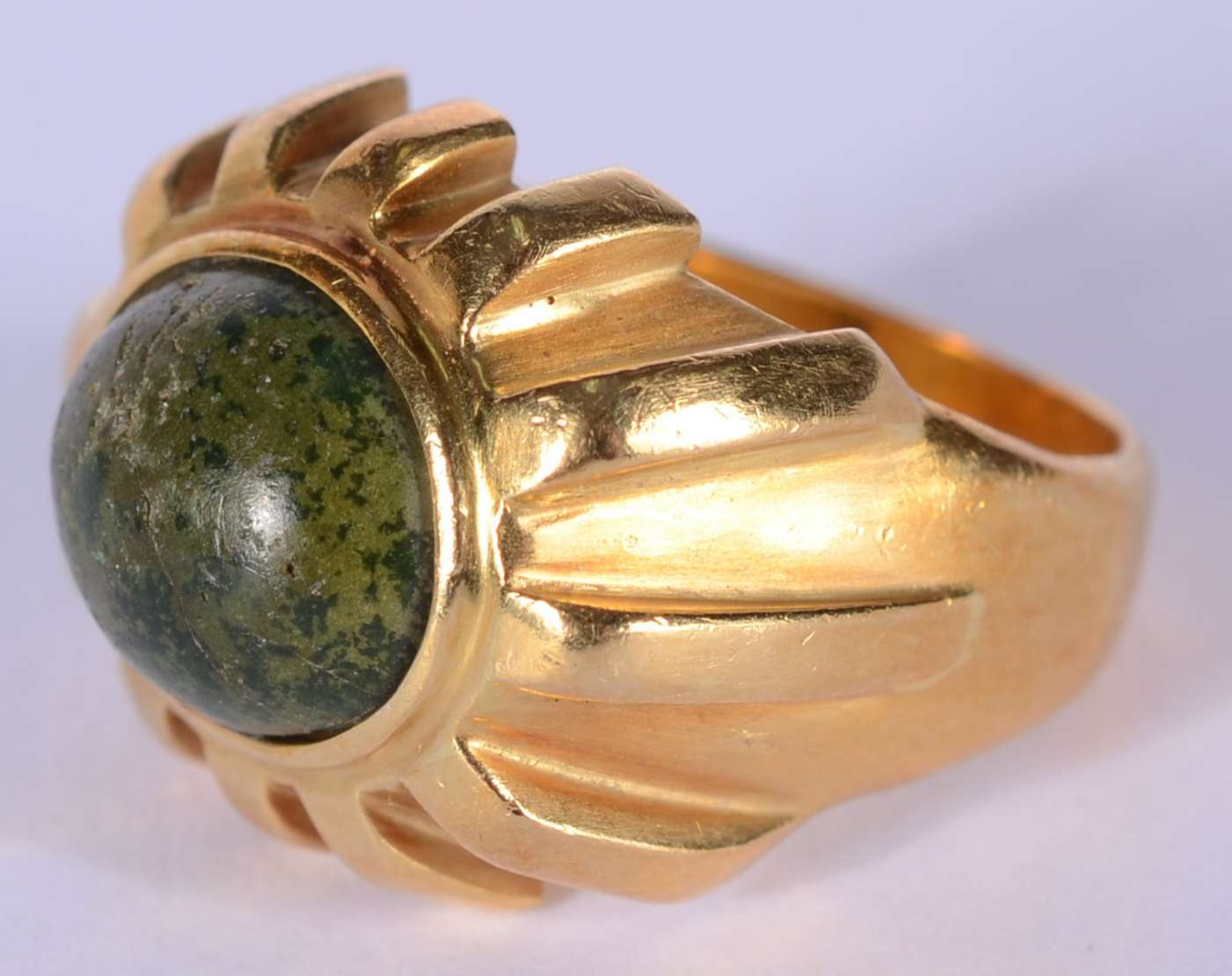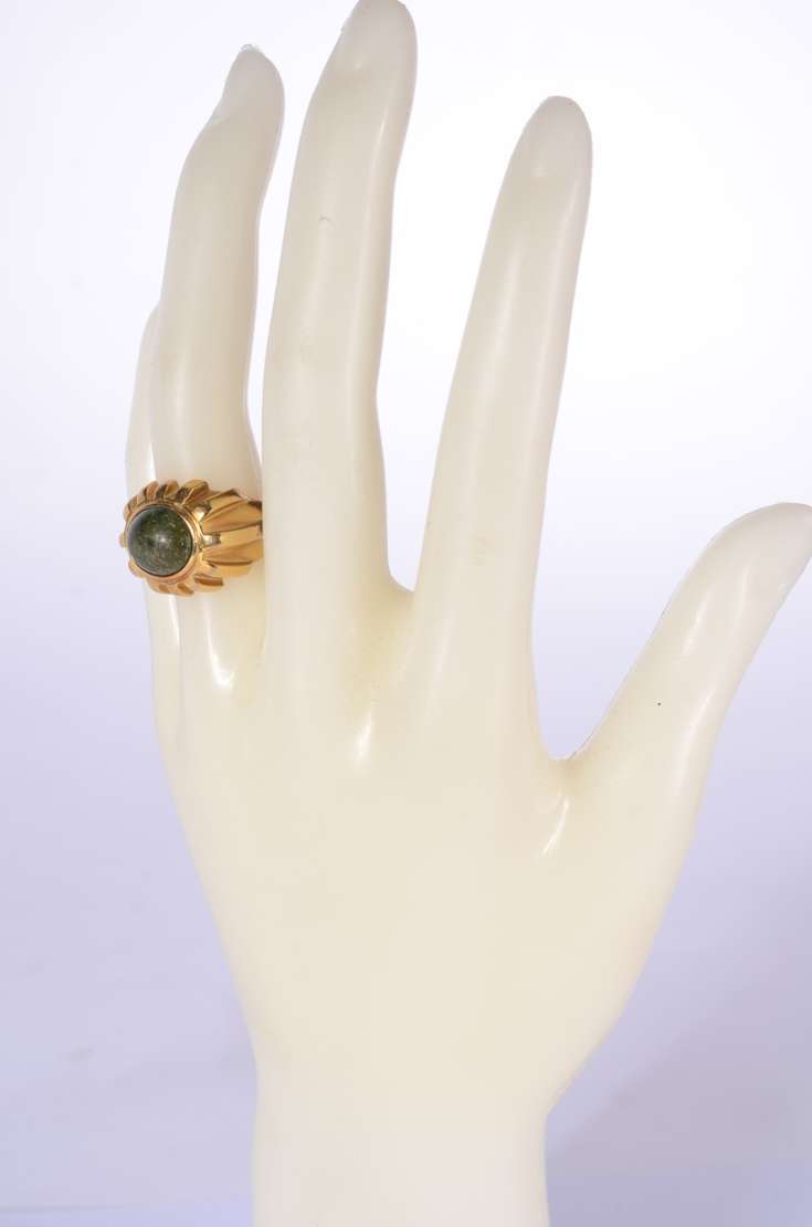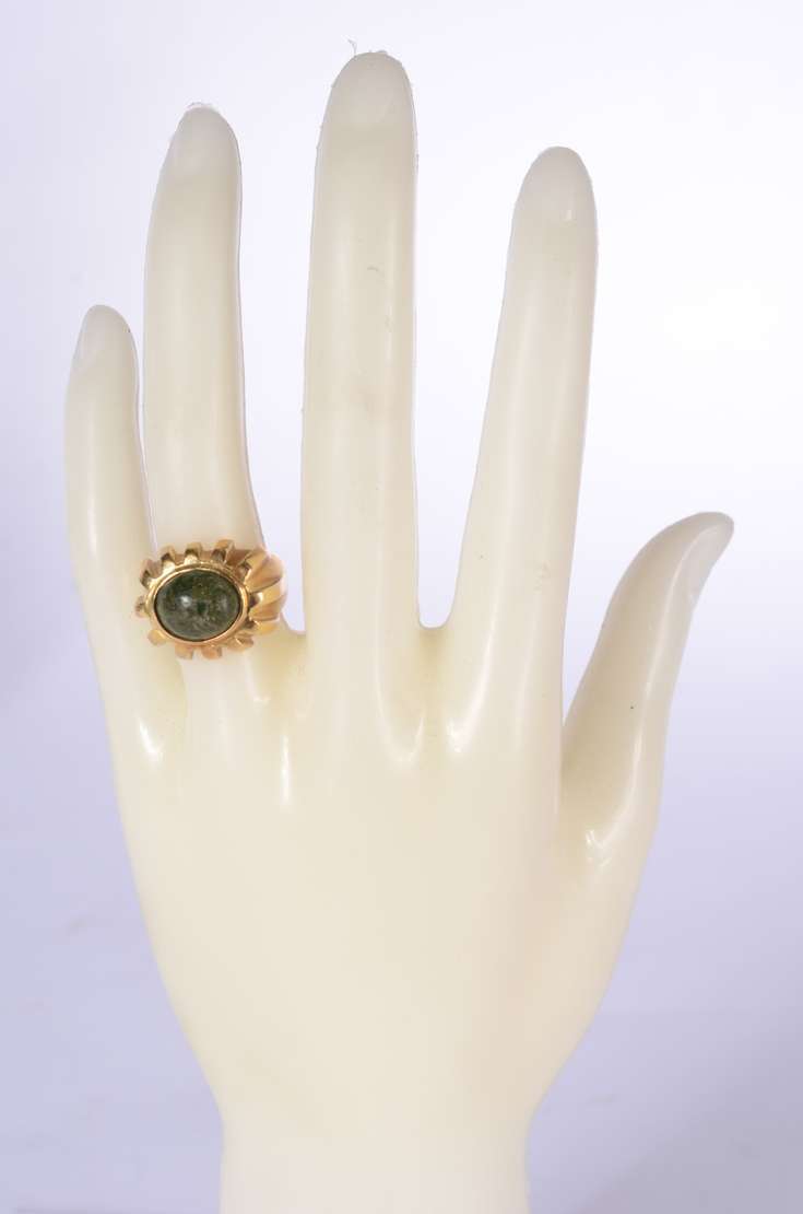 Meia aliança de ouro 18 k., contraste 750 mls com mini esmeralda, aro 22. (Por motivos de segurança a peça não se enc...