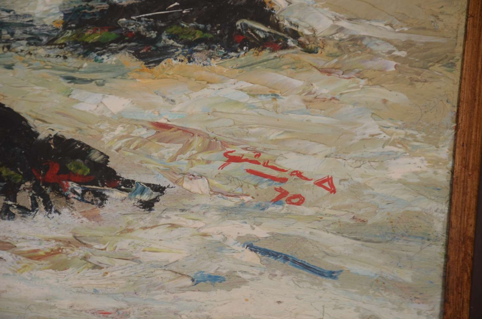 Duas pinturas orientais com motivos florais, em painéis articulados. Assinados.