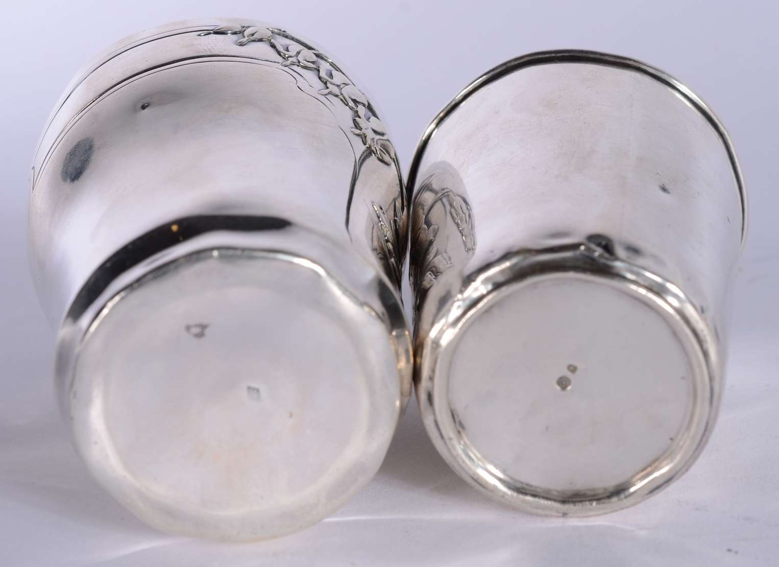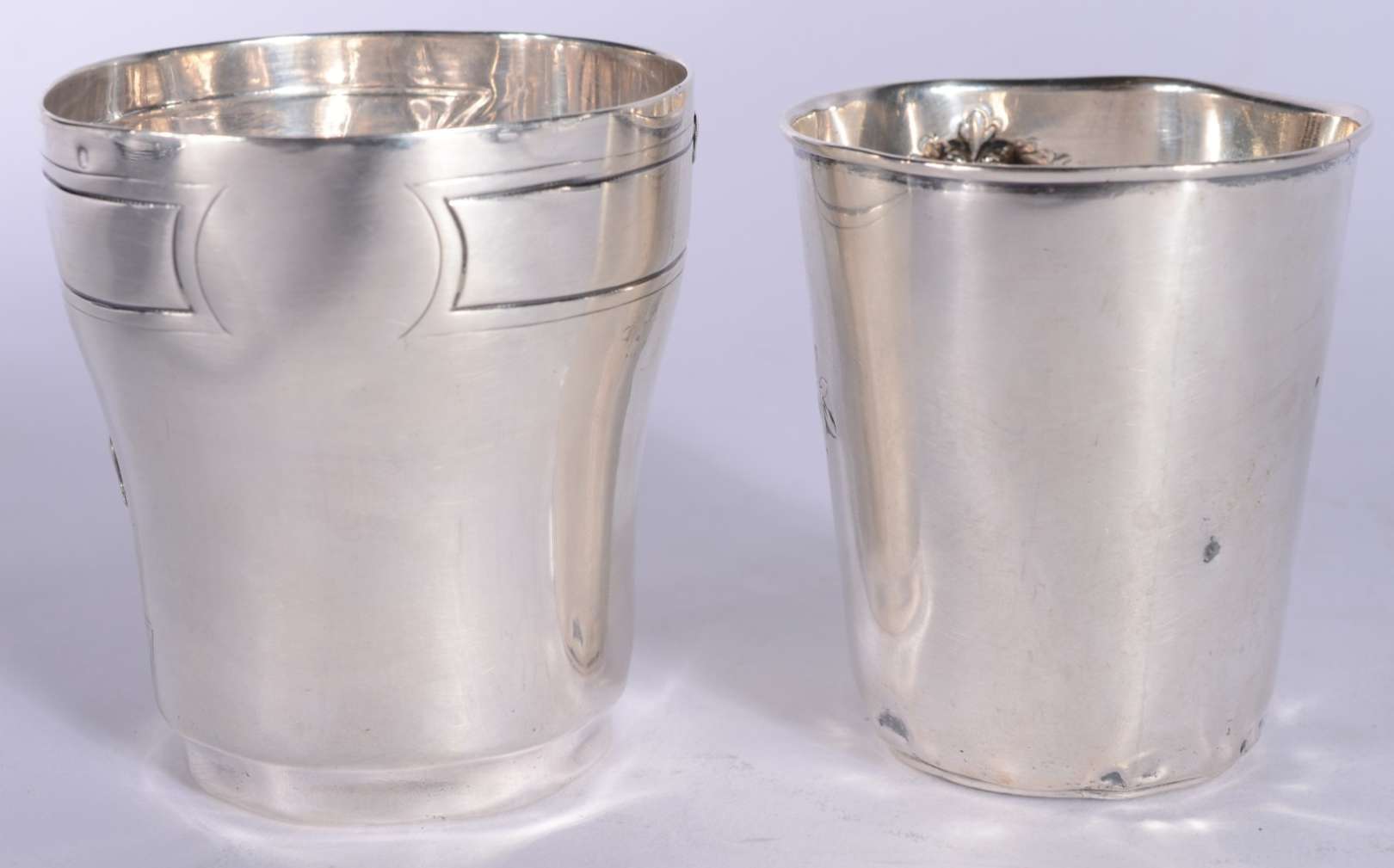 Duas fruteiras de cristal europeu lapidado, guarnição de metal prateado.