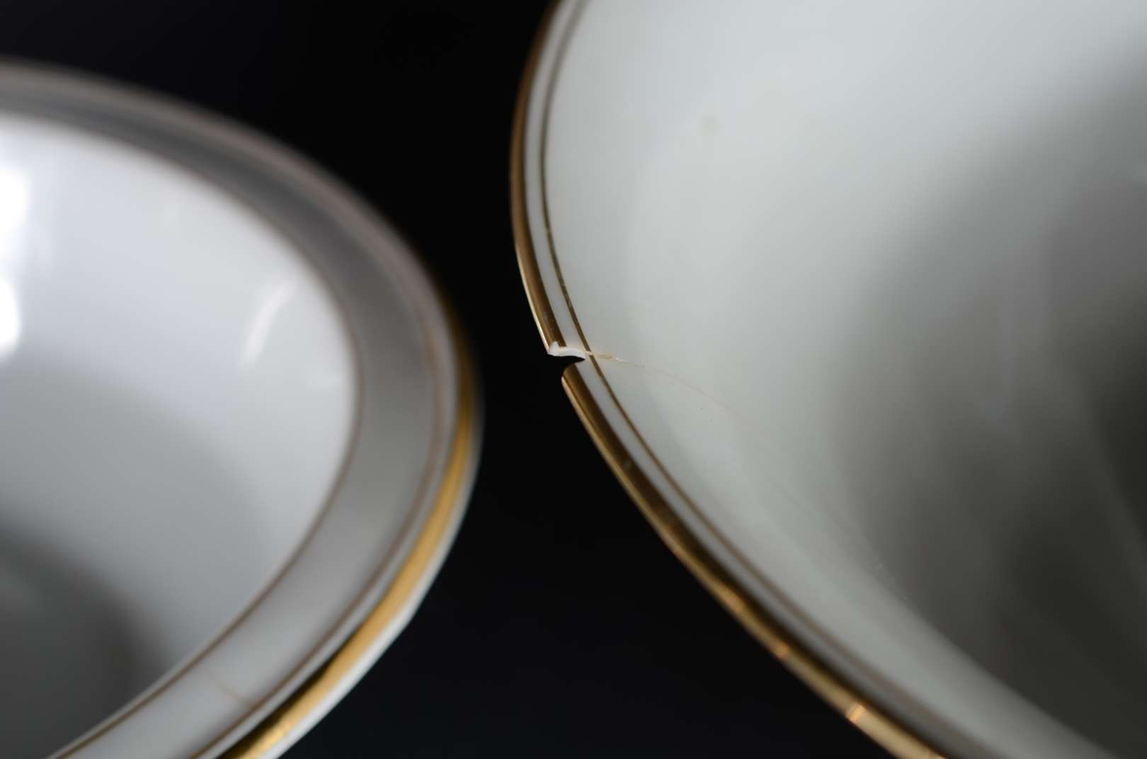Bowl de cristal lapidação "tijolinho", borda de metal dourado.