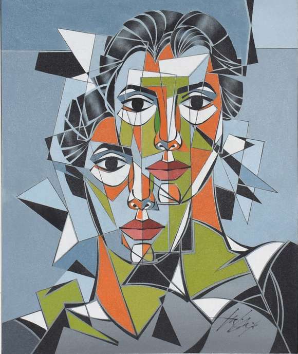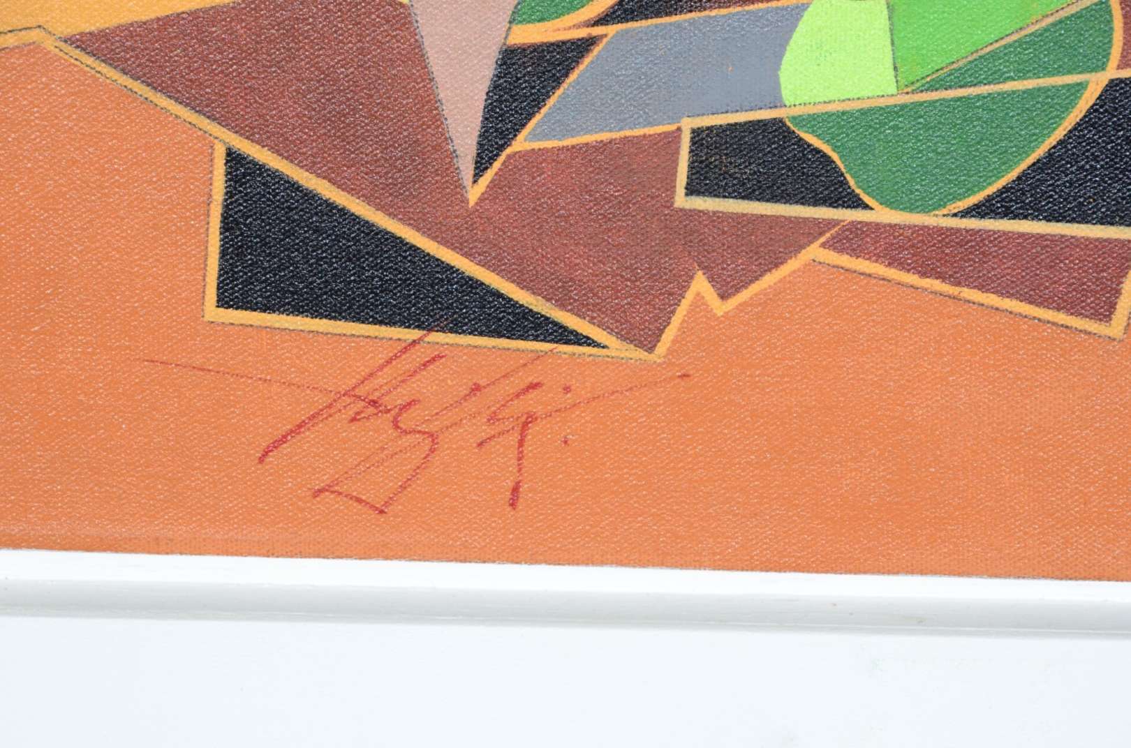 Duas pinturas orientais com motivos florais, em painéis articulados. Assinados.